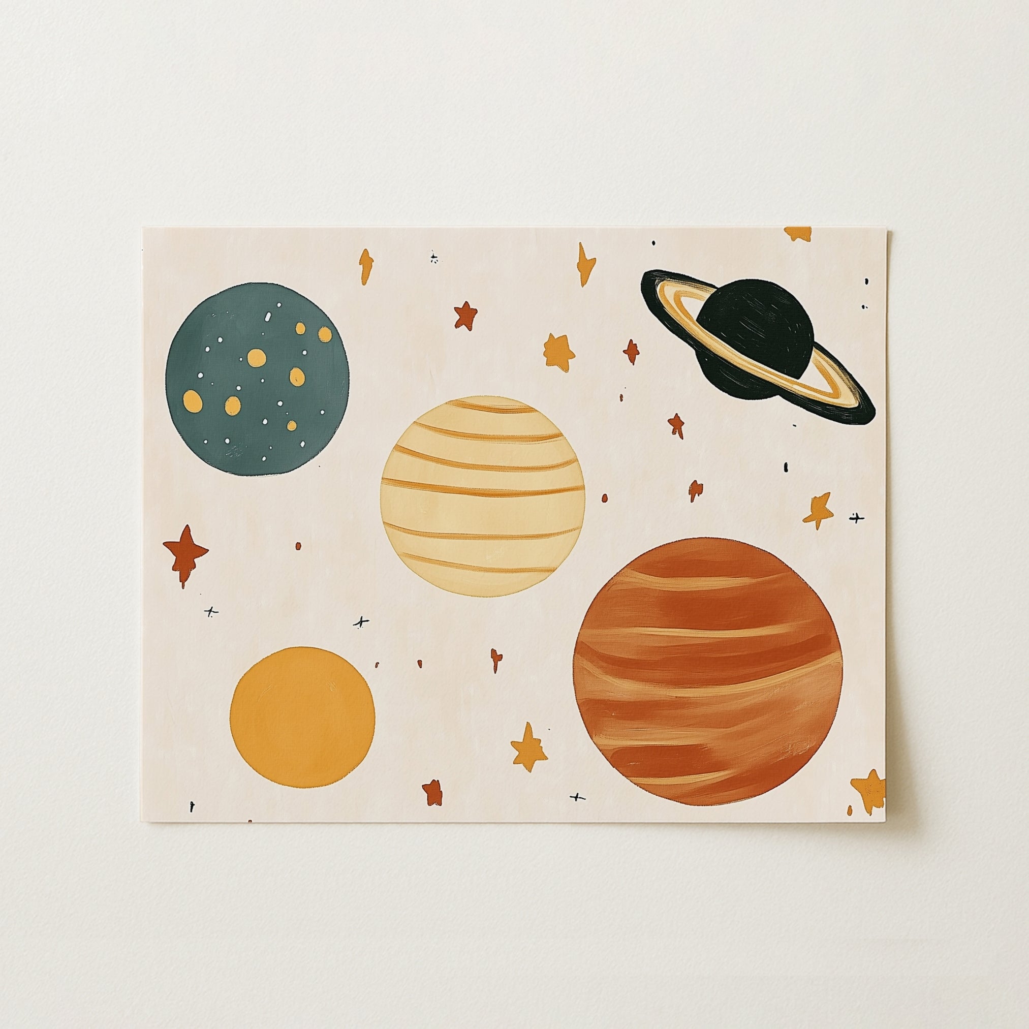 Planets Nursery Print – Cute Space Wall Art for Boys