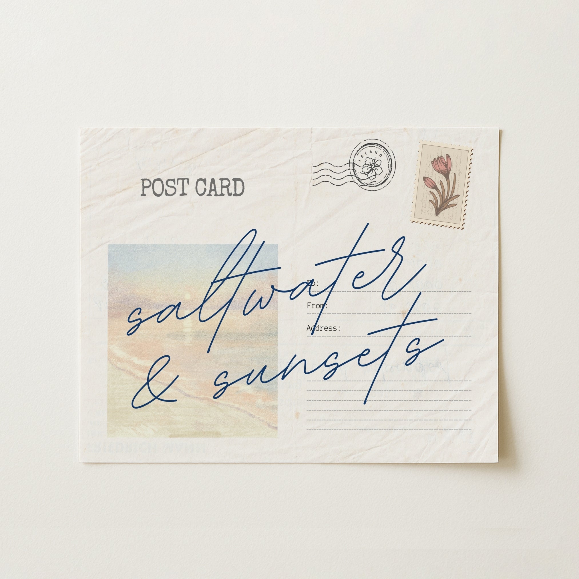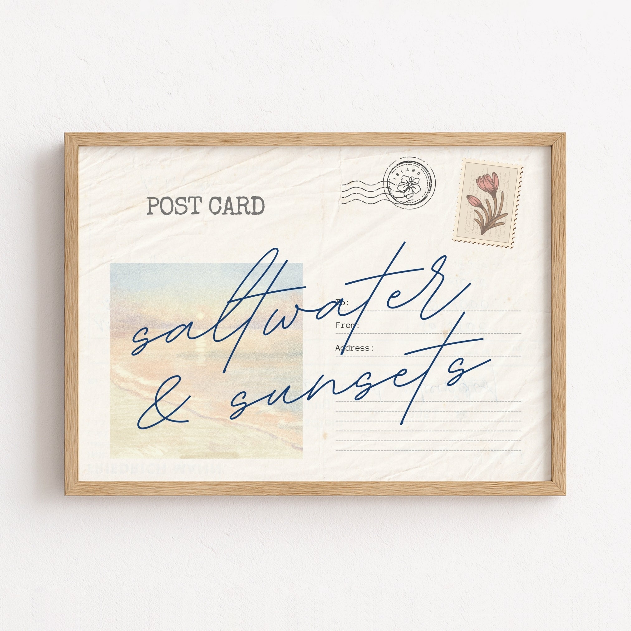 Saltwater and Sunsets Wall Art – Coastal Vintage Postcard Print