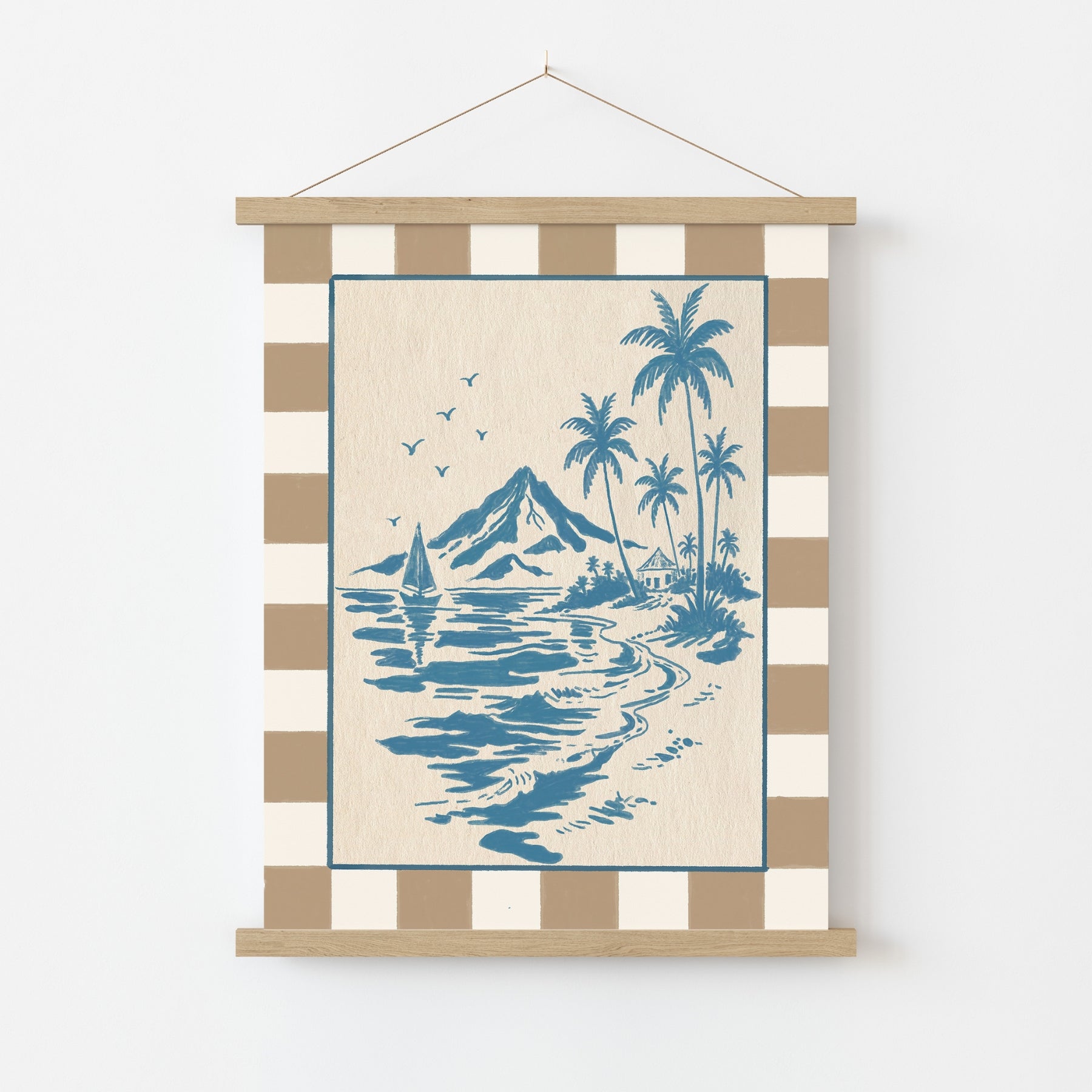 Printed on premium 200 gsm semi-gloss paper for soft yet vibrant tones and sharp details. Delivered with a minimalist wooden magnetic hanger, available in natural, white, or black finishes. Lightweight, modern, and ready to hang instantly — no frame needed.