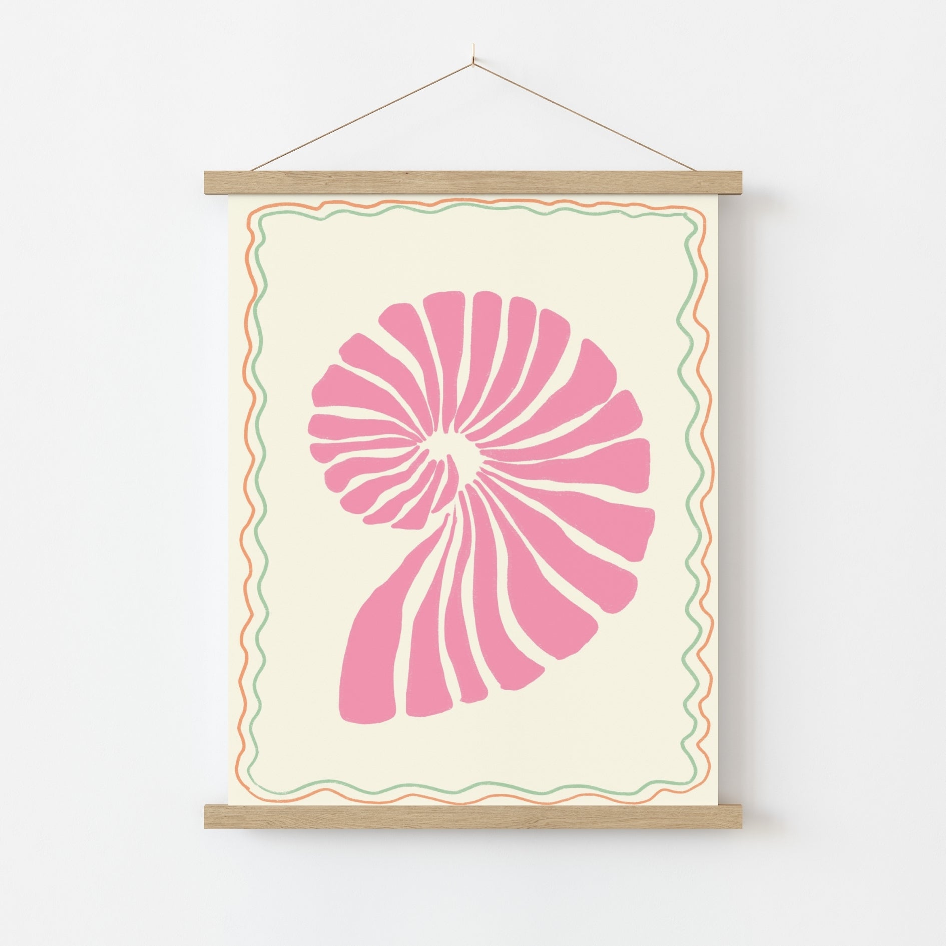 Printed on premium 200 gsm semi-gloss paper for soft yet vibrant tones and sharp details. Delivered with a minimalist wooden magnetic hanger, available in natural, white, or black finishes. Lightweight, modern, and ready to hang instantly — no frame needed.