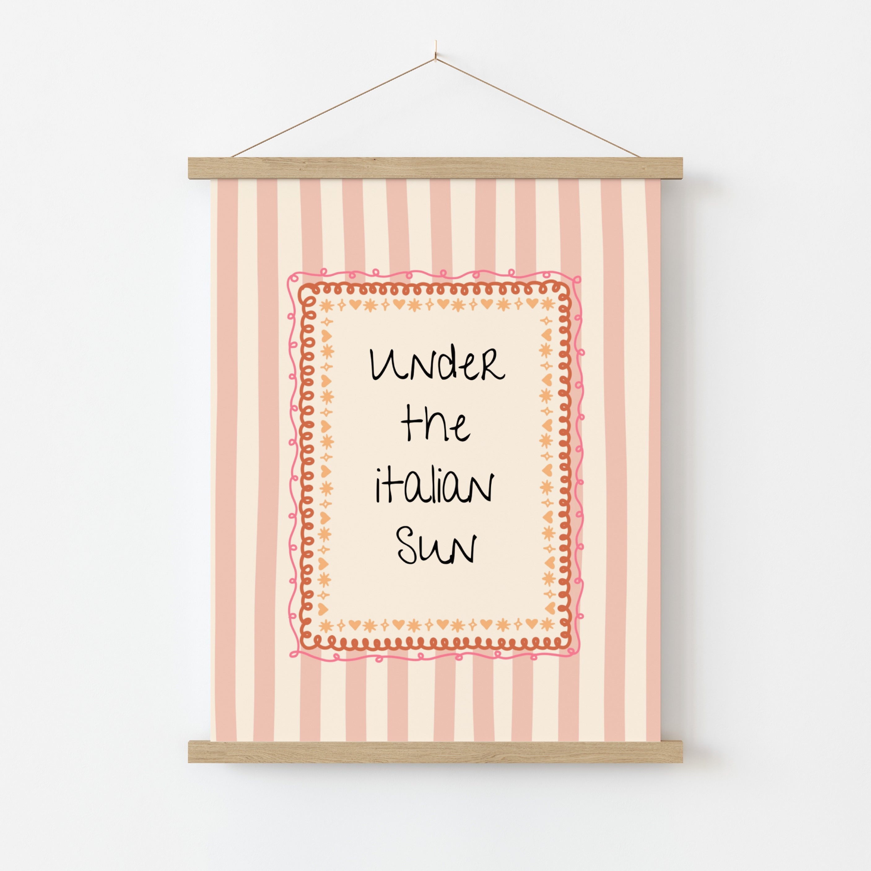 Printed on premium 200 gsm semi-gloss paper for soft yet vibrant tones and sharp details. Delivered with a minimalist wooden magnetic hanger, available in natural, white, or black finishes. Lightweight, modern, and ready to hang instantly — no frame needed.