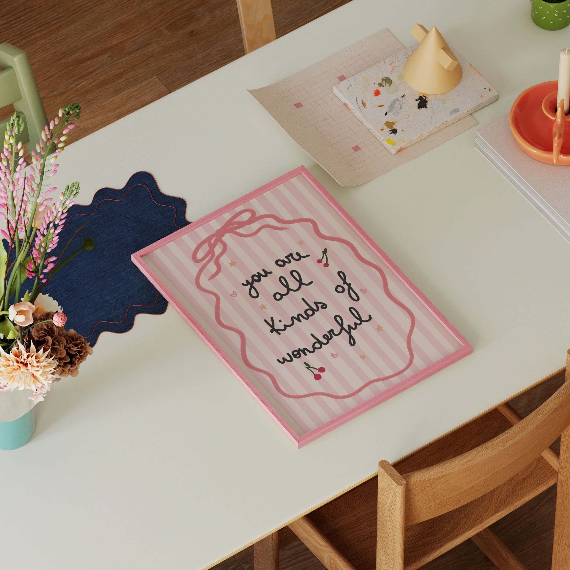 Ces affiches ont rendu notre petit coin lecture vraiment spécial. Leurs tons chauds et leurs motifs doux s'harmonisent parfaitement avec la pièce et y créent une ambiance chaleureuse. La qualité est superbe et les couleurs sont exactement comme sur la photo.