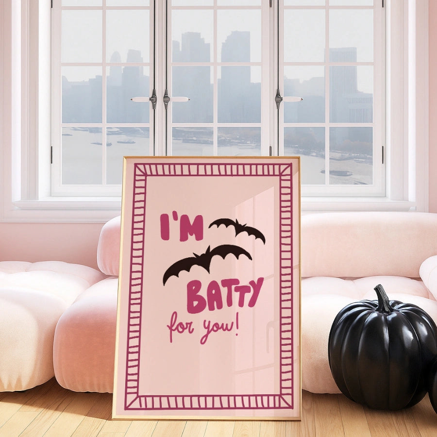 Affiche Halloween Batty Love – Décoration murale rose effrayante