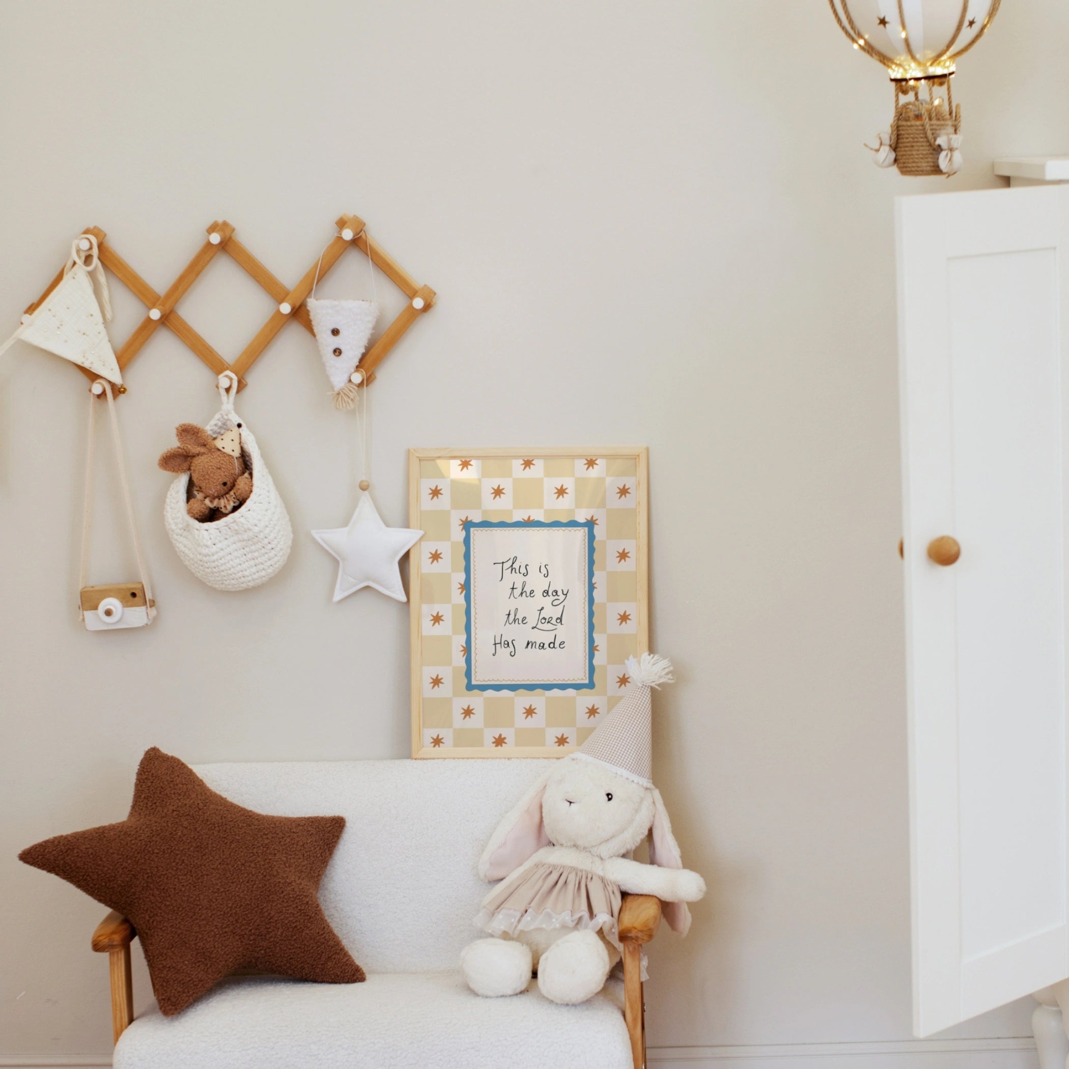 Transformez la chambre de votre tout-petit en un espace paisible et inspirant avec notre décoration murale de chambre d'enfant illustrée à la main.