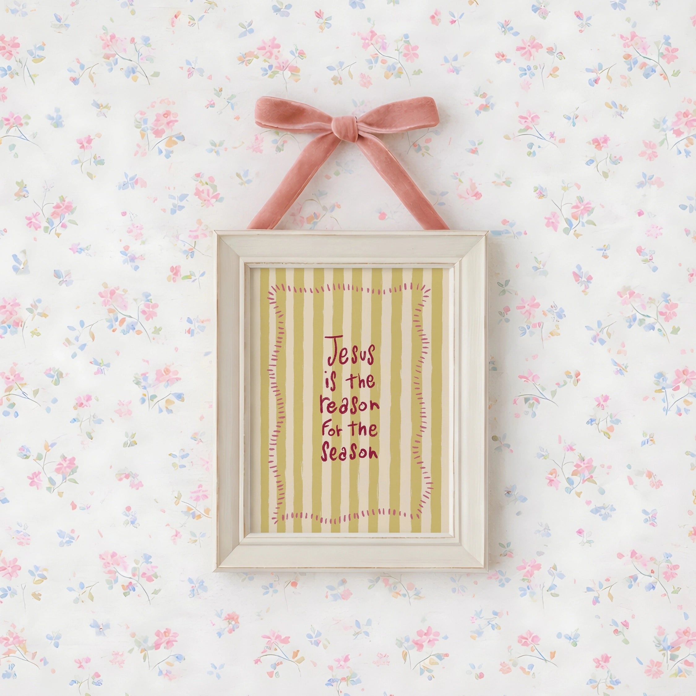 Transformez votre espace en un sanctuaire doux et empreint de foi grâce à nos illustrations murales chrétiennes réalisées à la main, dans un style printanier délicat et coquet.