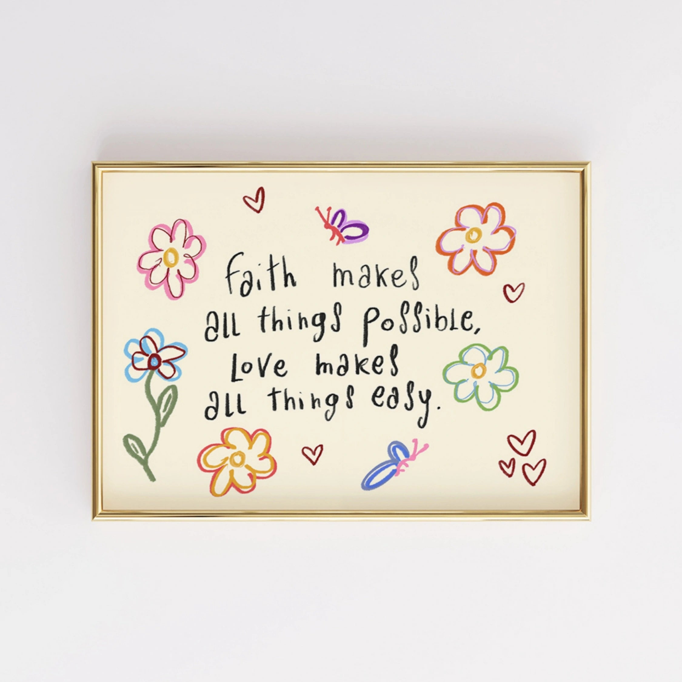 Transformez votre espace en un sanctuaire doux et empreint de foi grâce à nos illustrations murales chrétiennes réalisées à la main, dans un style printanier délicat et coquet.