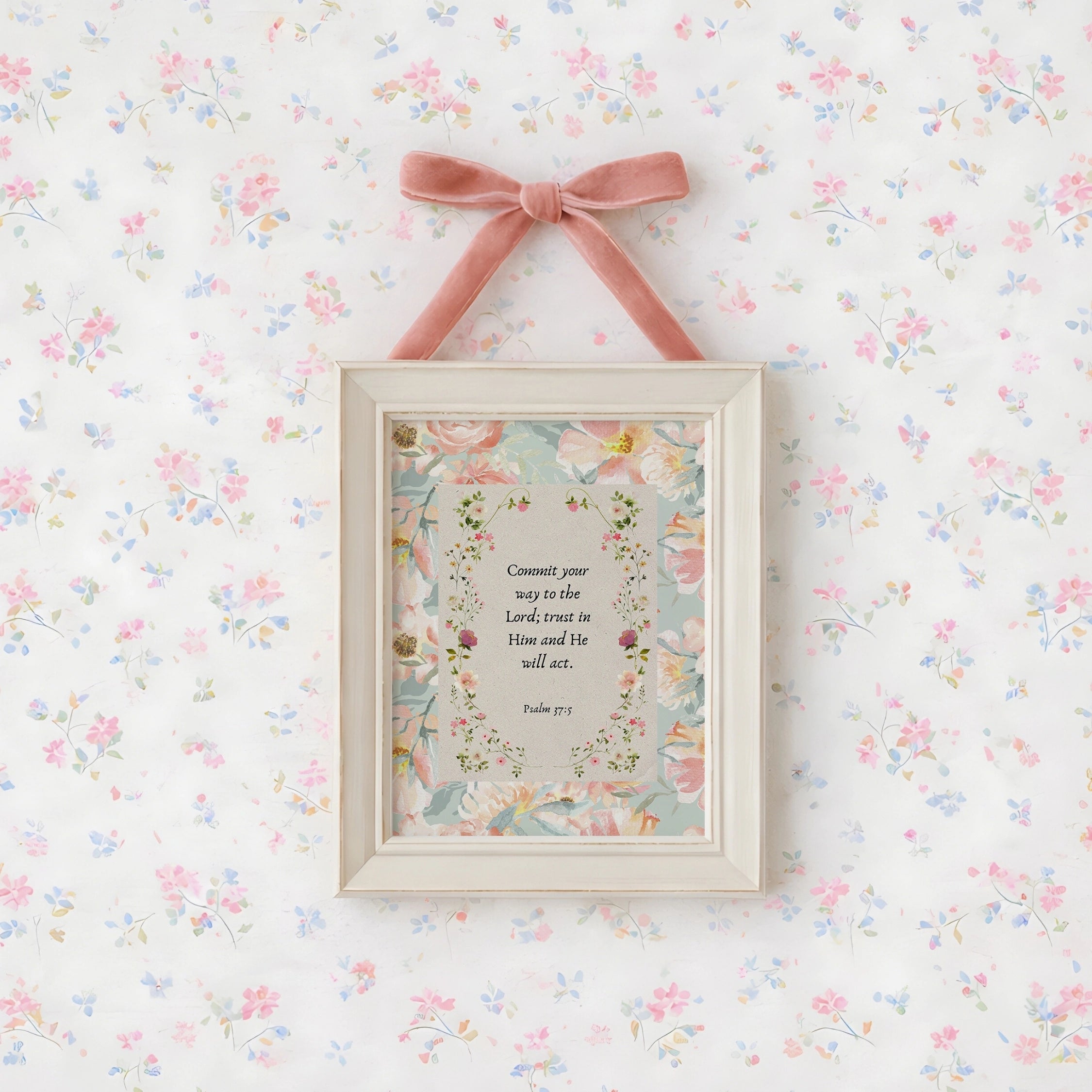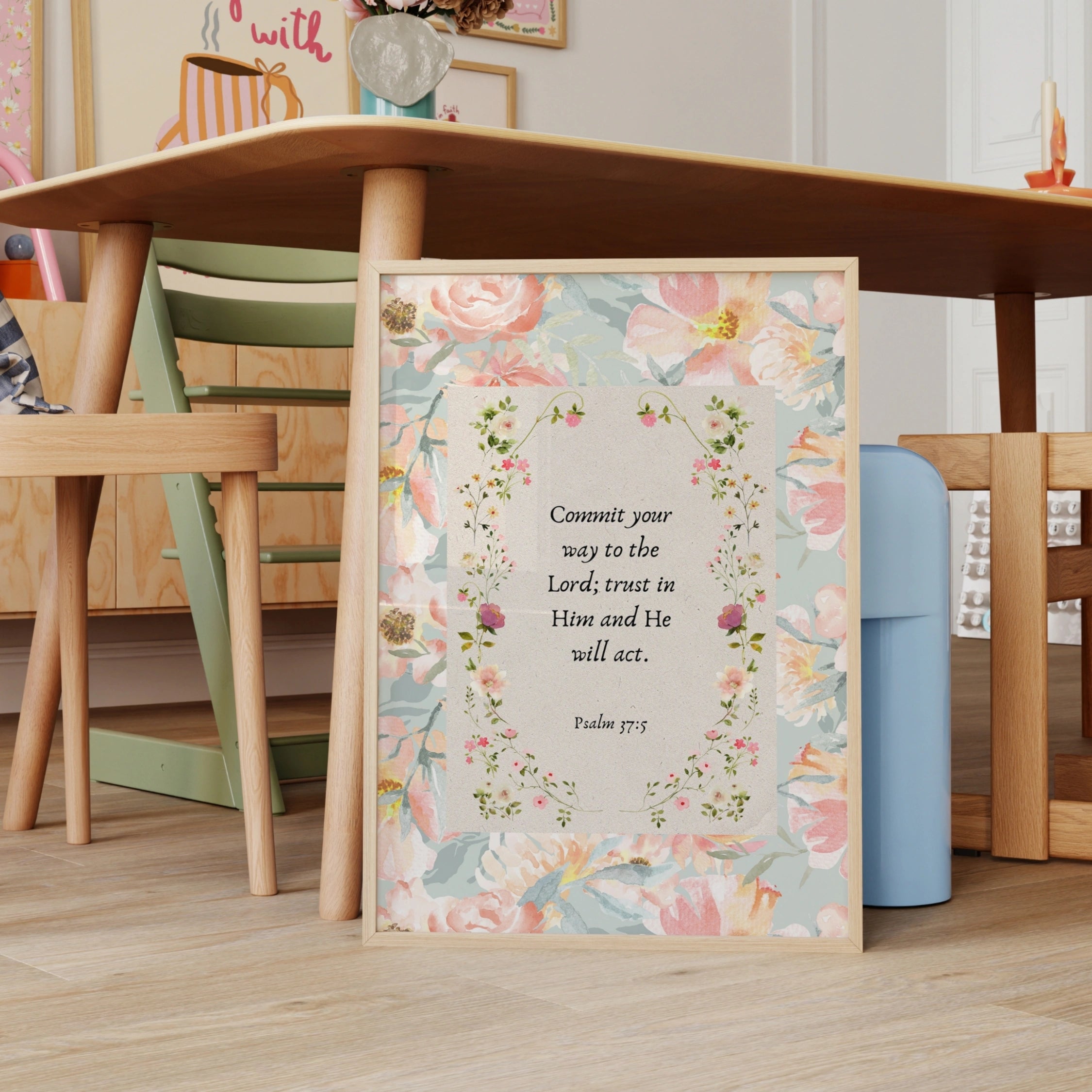 Transformez votre espace en un sanctuaire doux et empreint de foi grâce à nos illustrations murales chrétiennes réalisées à la main, dans un style printanier délicat et coquet.