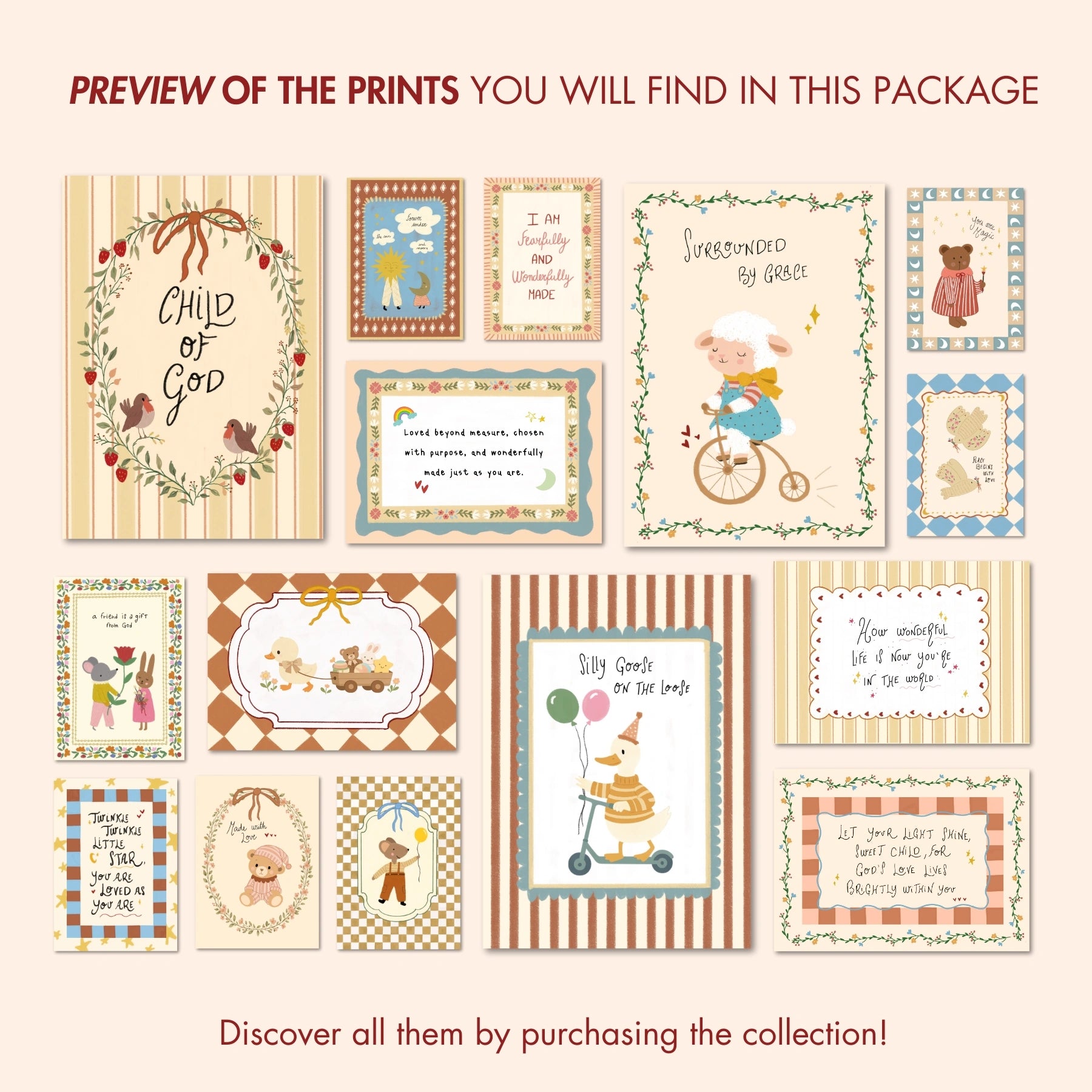 Ensemble de 16 affiches chrétiennes artisanales pour chambre d'enfant