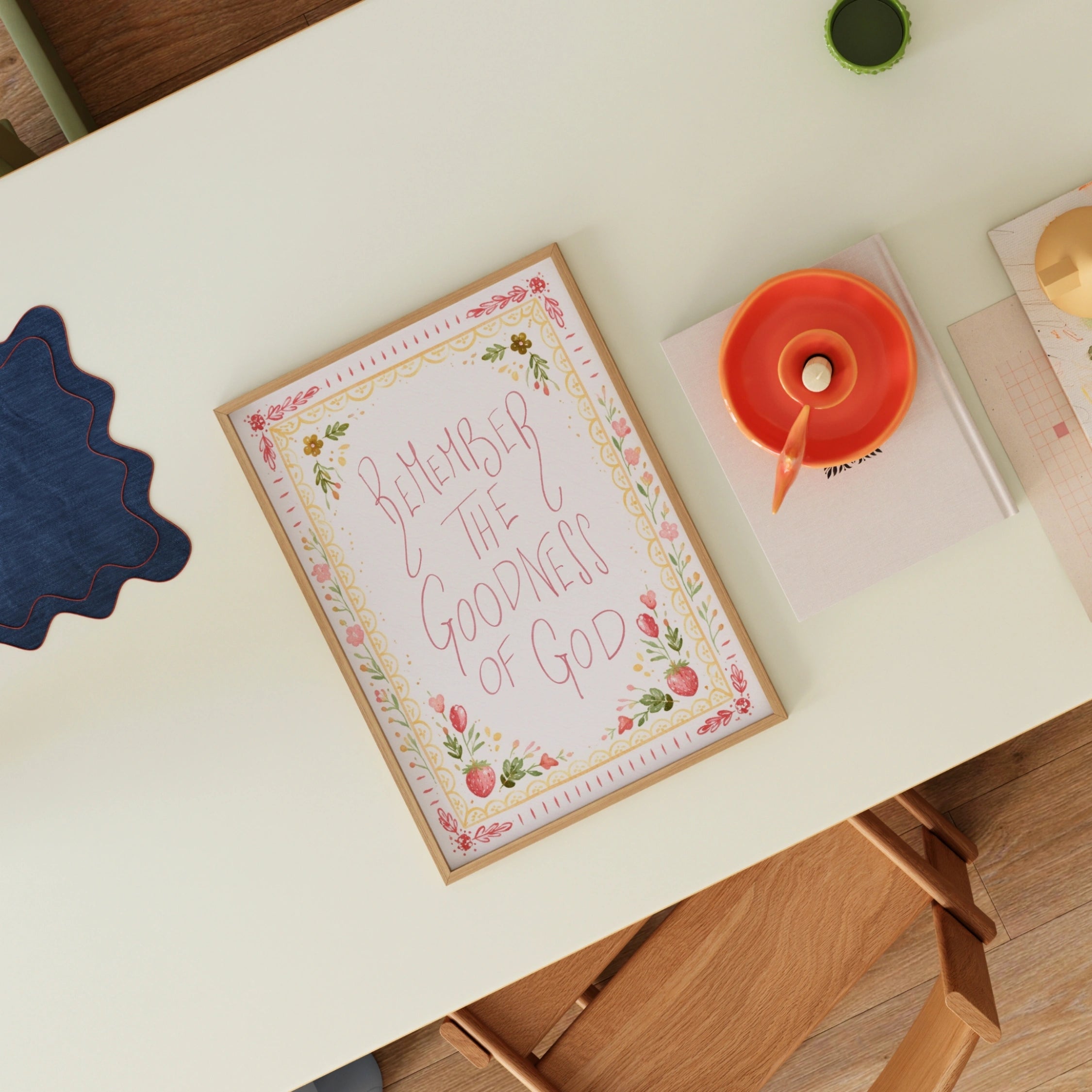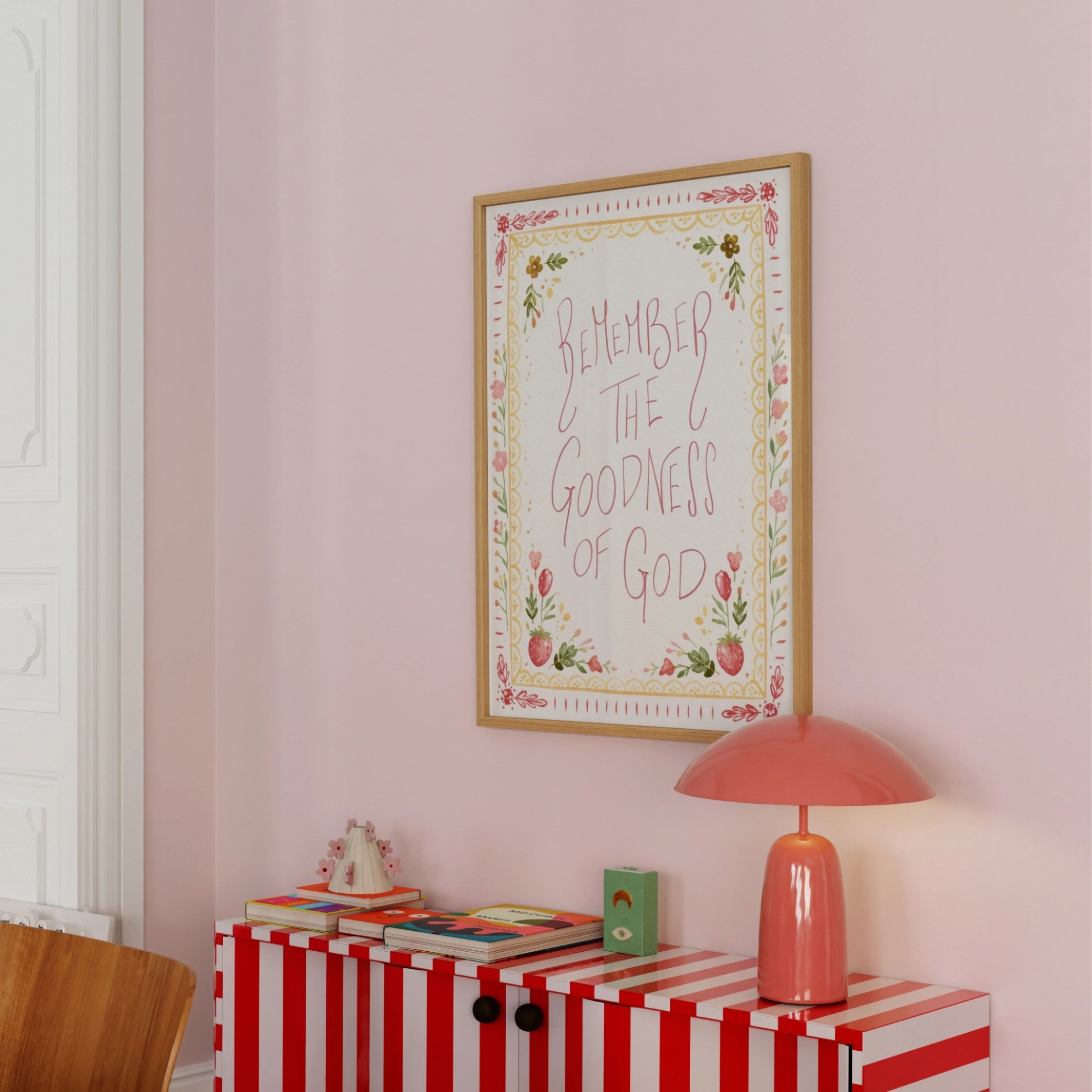 Transformez votre espace en un sanctuaire doux et empreint de foi grâce à nos illustrations murales chrétiennes réalisées à la main, dans un style printanier délicat et coquet.
