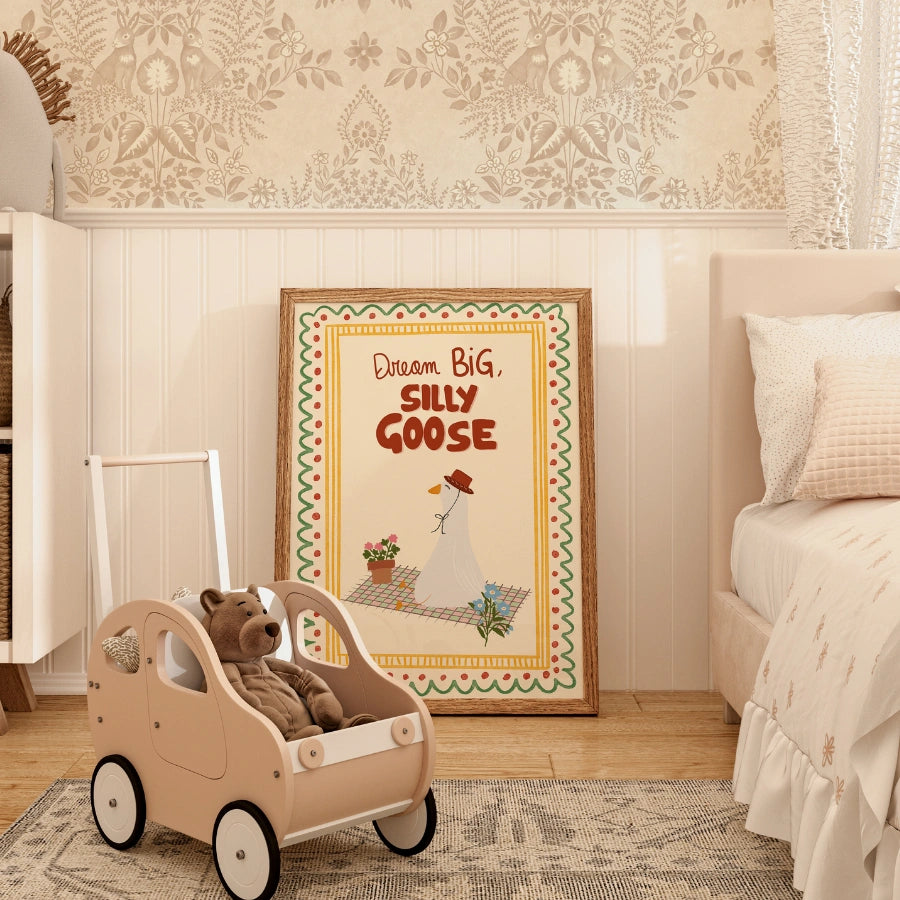 Impression de chambre d'enfant « Silly Goose » - Décoration murale animalière de rêve pour enfants