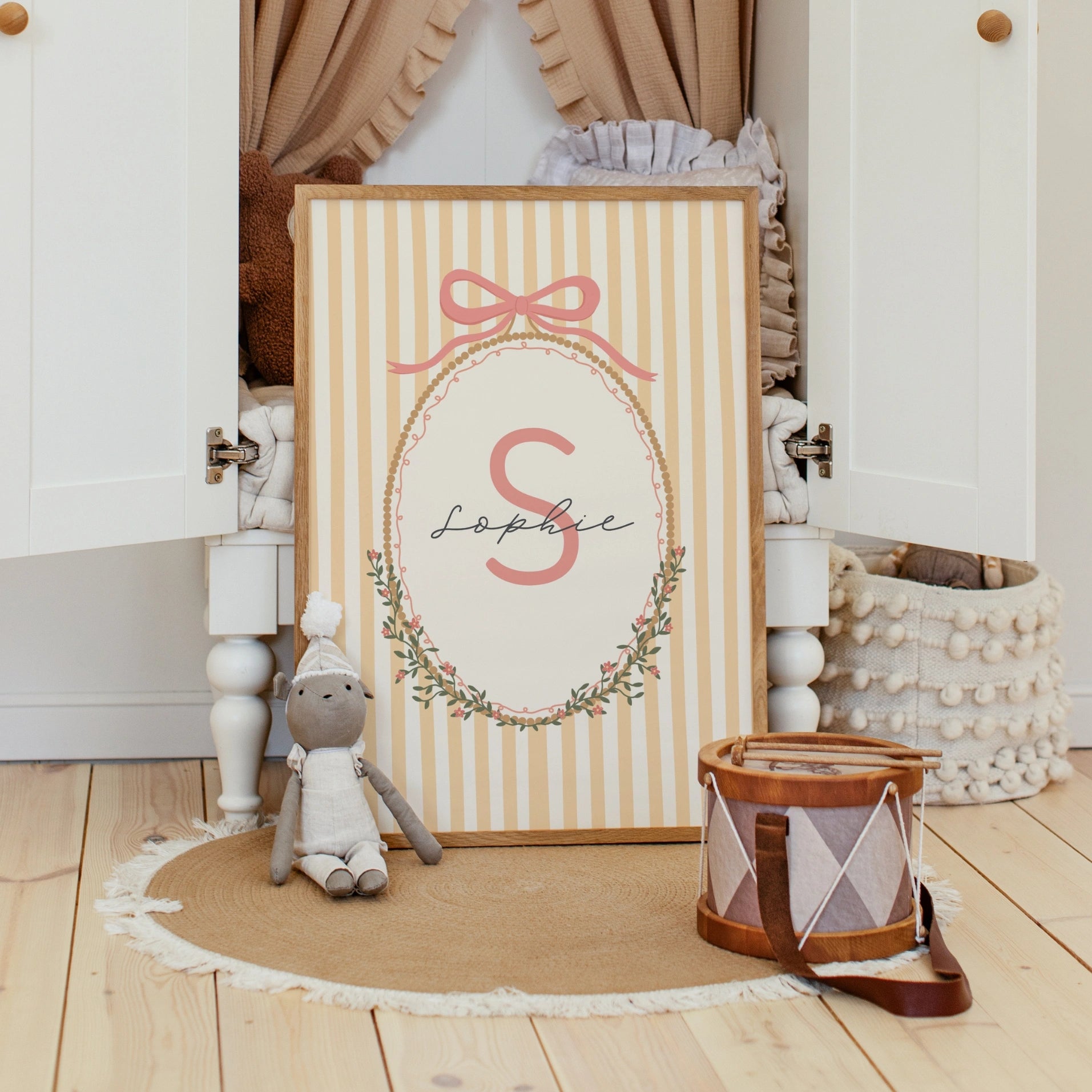 Veuillez choisir le motif qui vous plaît, sélectionner le format d'impression et ajouter le nom que vous souhaitez inclure. Parfaite pour les chambres de bébé et les espaces pour enfants, cette adorable décoration murale est conçue pour célébrer votre petit ange avec douceur et amour.