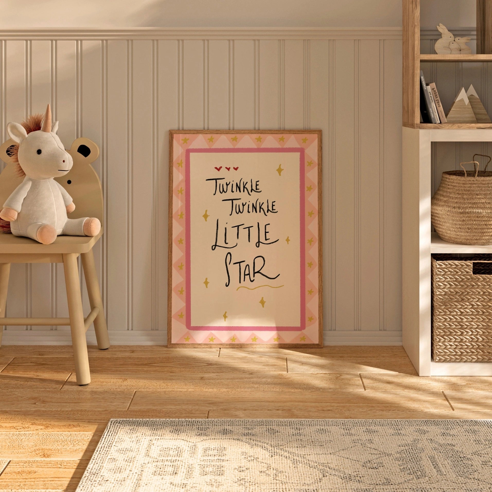 Transformez la chambre de votre tout-petit en un espace paisible et inspirant avec notre décoration murale de chambre d'enfant illustrée à la main.