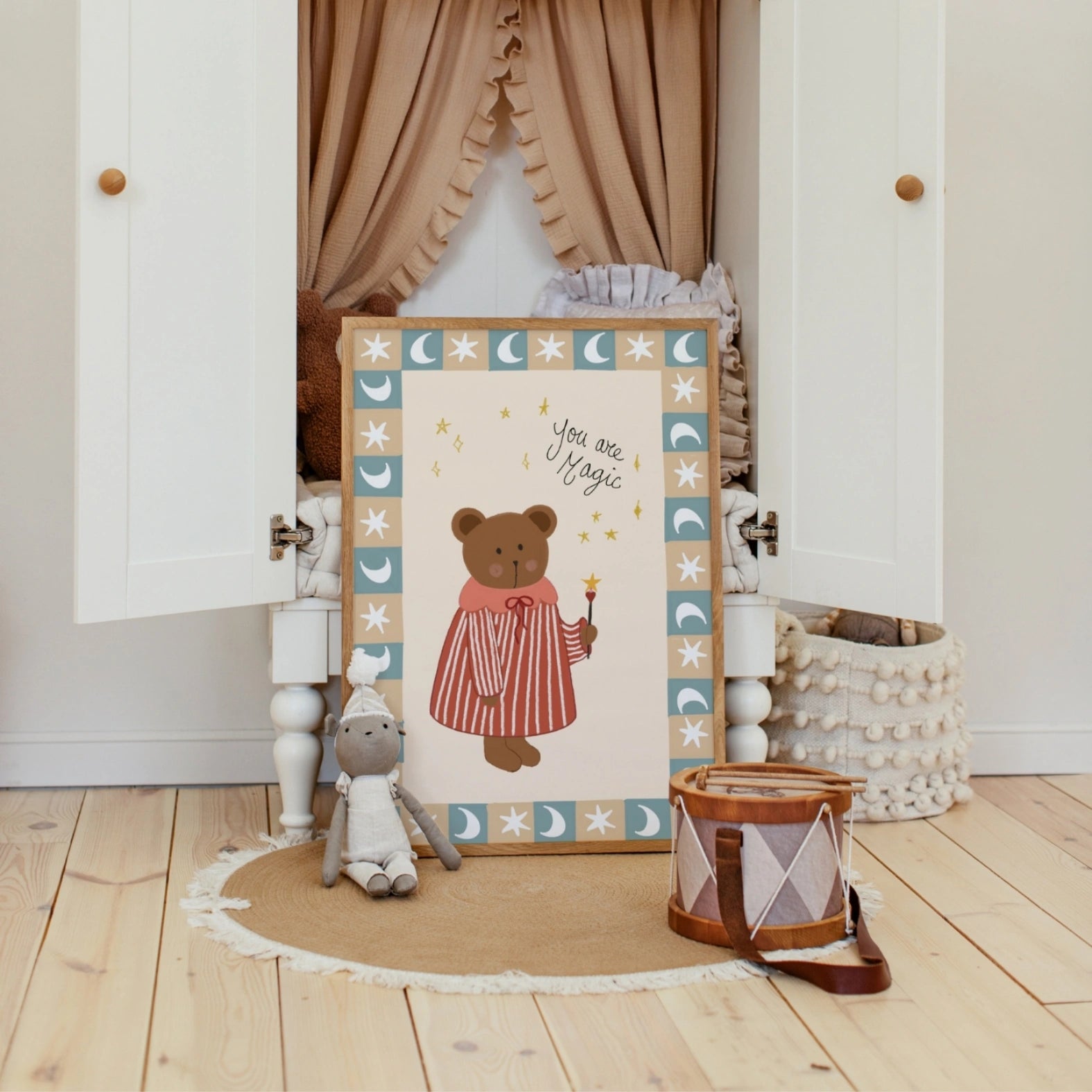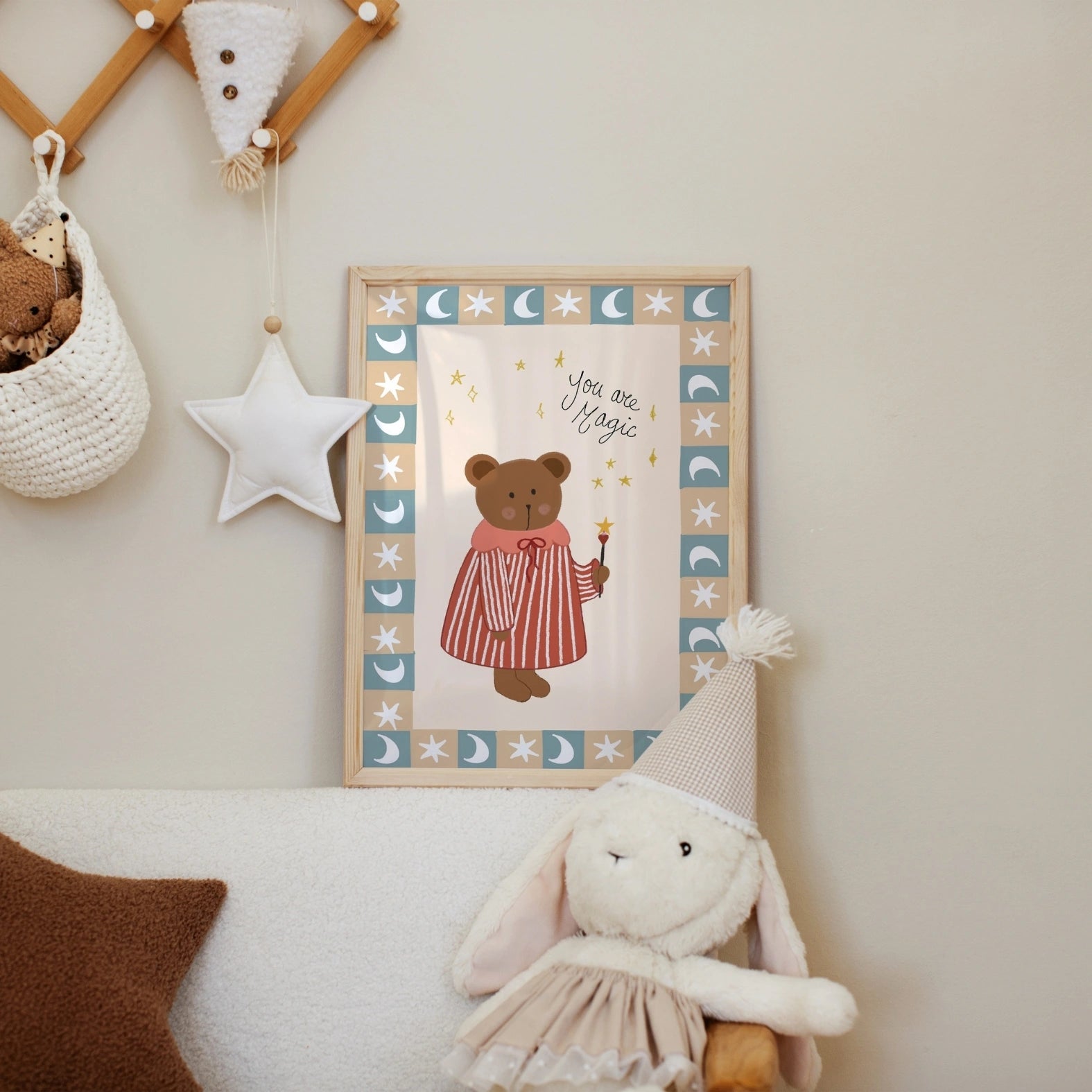 Transformez la chambre de votre tout-petit en un espace paisible et inspirant avec notre décoration murale de chambre d'enfant illustrée à la main.
