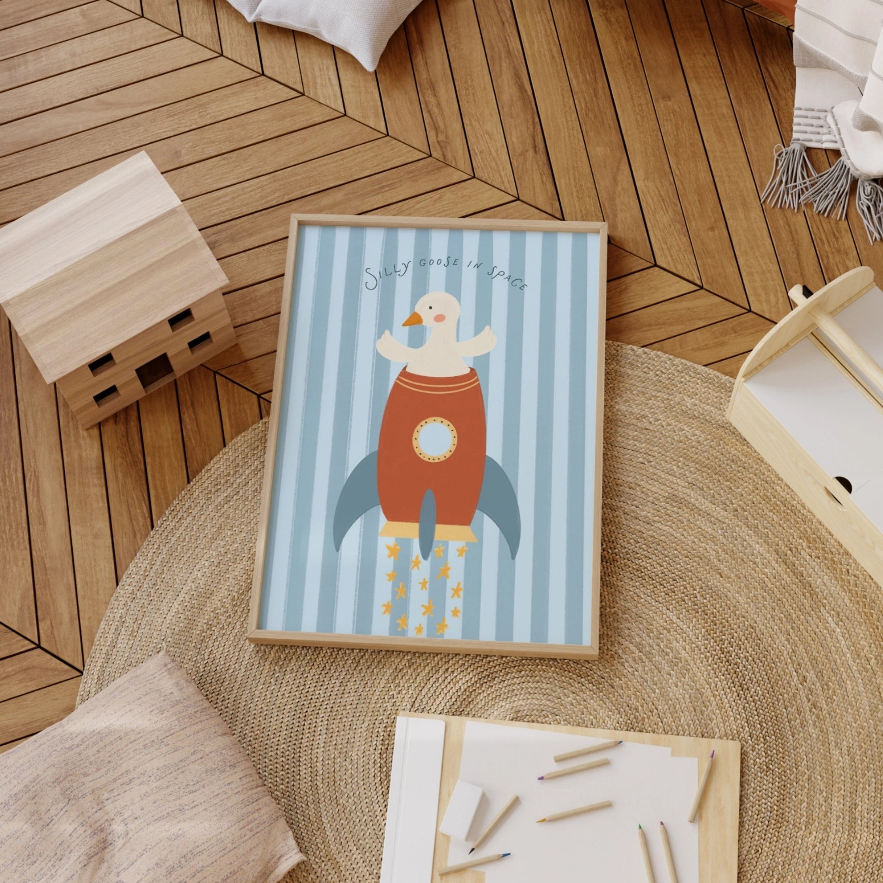 Arte da parete per bambini di Oca buffa nello spazio