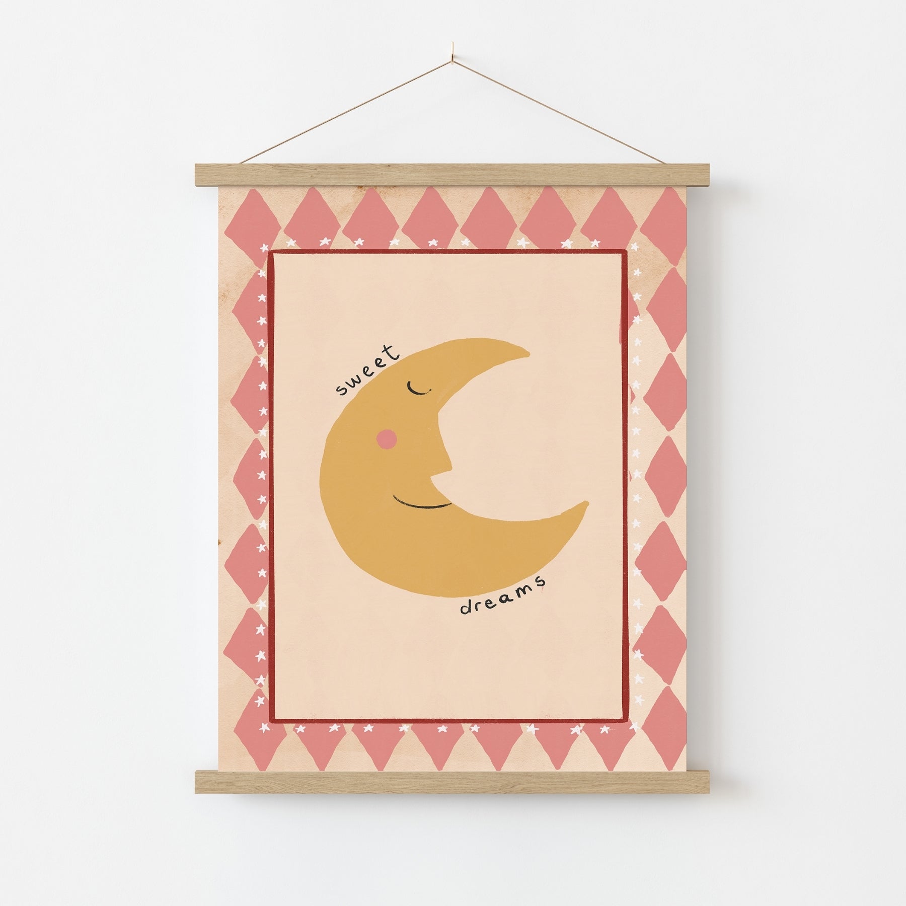 Stampato su carta semilucida di alta qualità da 200 g/m², per toni tenui ma vivaci e dettagli nitidi. Fornito con un gancio magnetico in legno minimalista, disponibile nelle finiture naturale, bianco o nero. Leggero, moderno e pronto da appendere all'istante, senza bisogno di cornice.