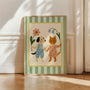 Stampato su carta semilucida di alta qualità da 200 g/m², per toni tenui ma vivaci e dettagli nitidi. Fornito con un gancio magnetico in legno minimalista, disponibile nelle finiture naturale, bianco o nero. Leggero, moderno e pronto da appendere all'istante, senza bisogno di cornice.