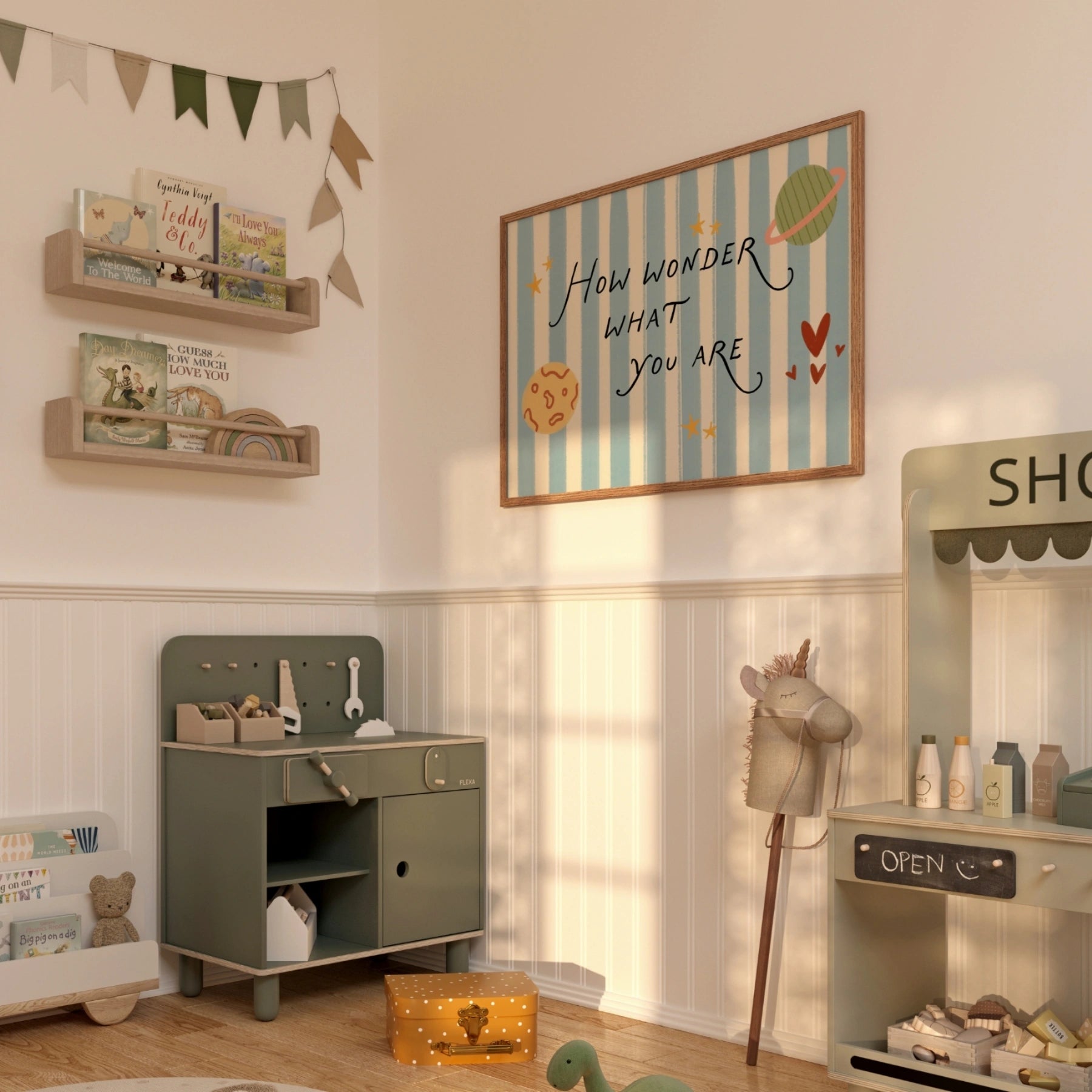 Creiamo stampe murali divertenti e moderne per neonati, bambini piccoli, ragazzi e anche per le mamme. Pensate per asili nido, sale giochi, camere da letto e cucine, le nostre stampe aggiungono colore e personalità alla tua casa. Ogni disegno è accuratamente disegnato a mano e realizzato in Italia.
