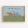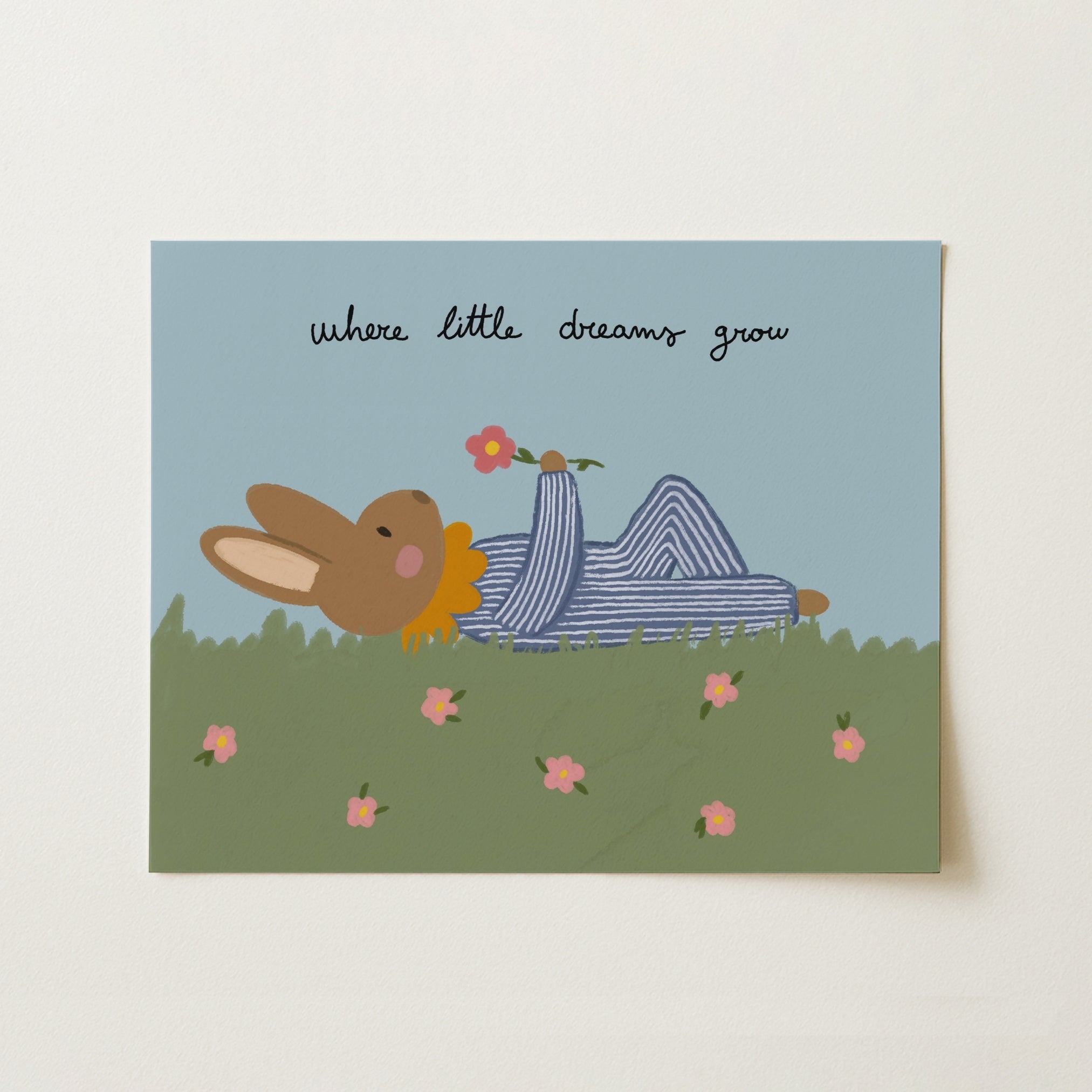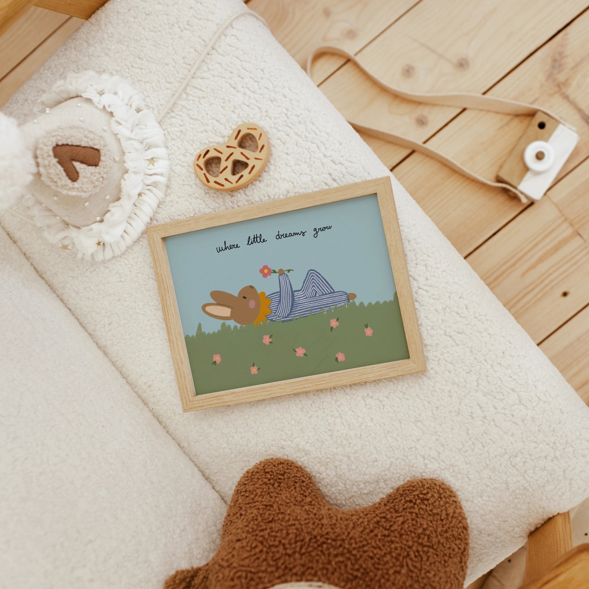 Stampato su carta semilucida di alta qualità da 200 g/m², per toni tenui ma vivaci e dettagli nitidi. Fornito con un gancio magnetico in legno minimalista, disponibile nelle finiture naturale, bianco o nero. Leggero, moderno e pronto da appendere all'istante, senza bisogno di cornice.