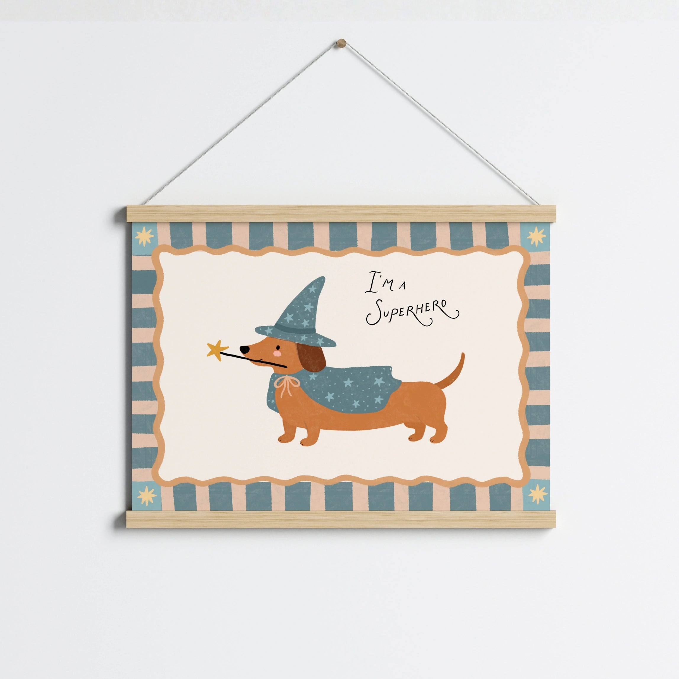 Stampato su carta semilucida di alta qualità da 200 g/m², per toni tenui ma vivaci e dettagli nitidi. Fornito con un gancio magnetico in legno minimalista, disponibile nelle finiture naturale, bianco o nero. Leggero, moderno e pronto da appendere all'istante, senza bisogno di cornice.