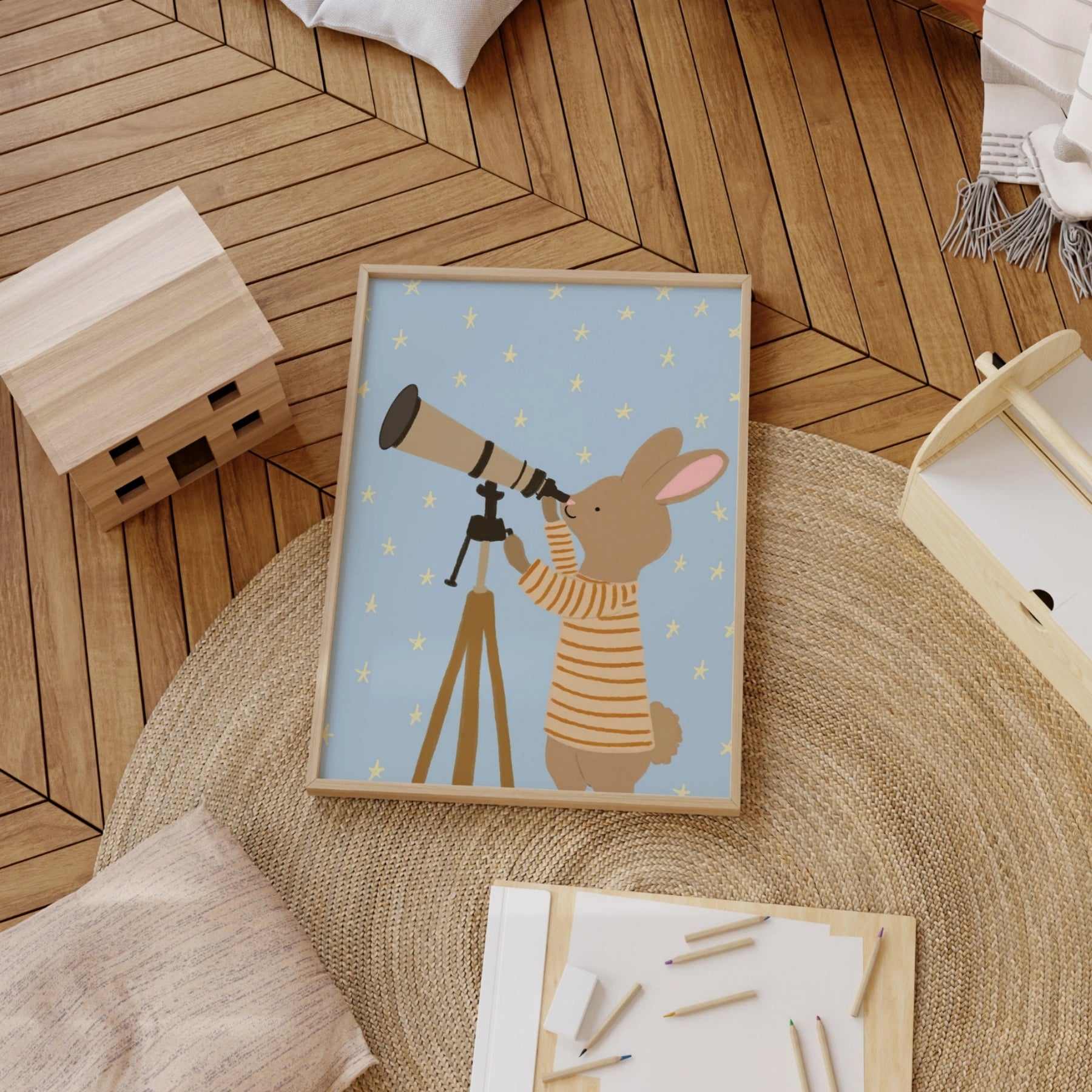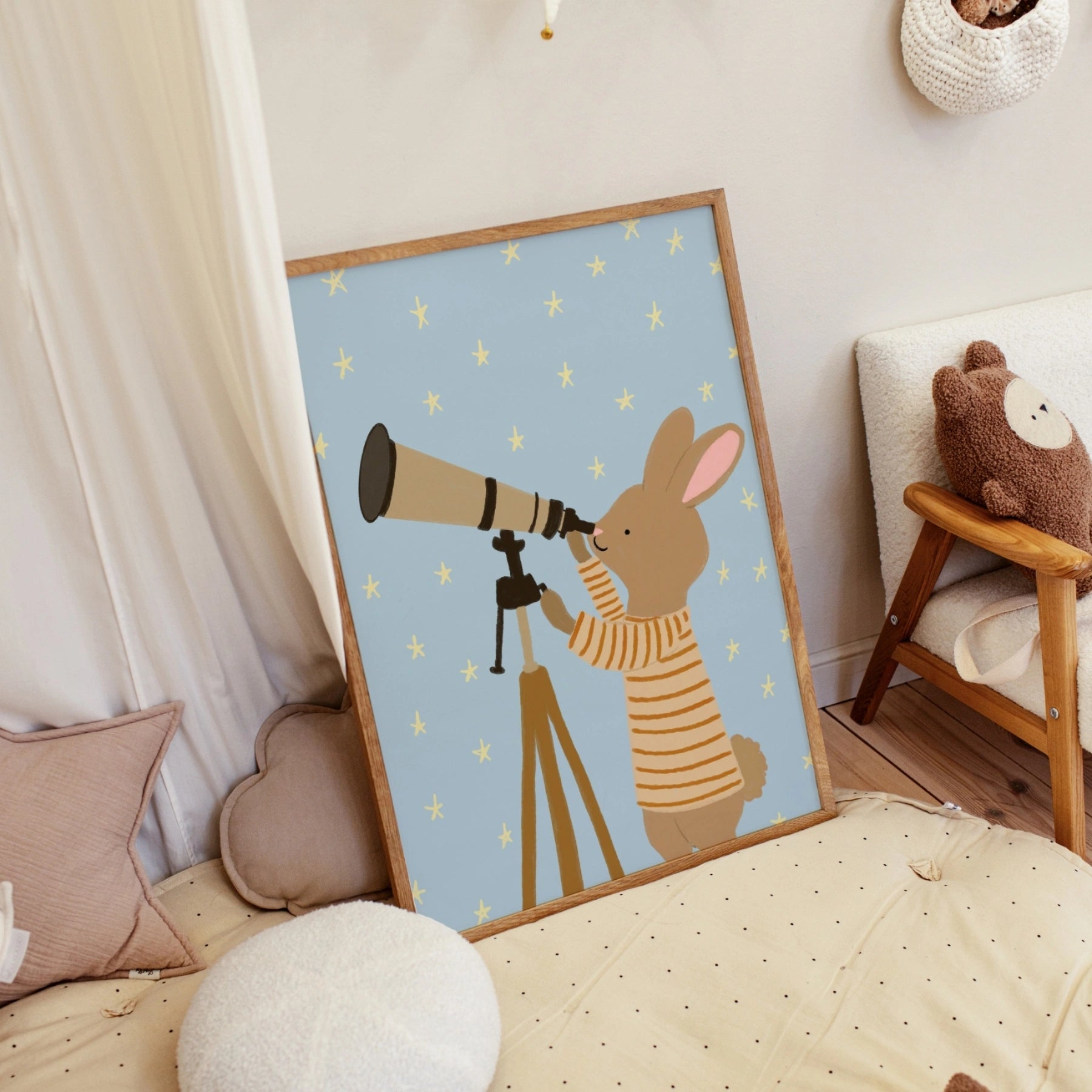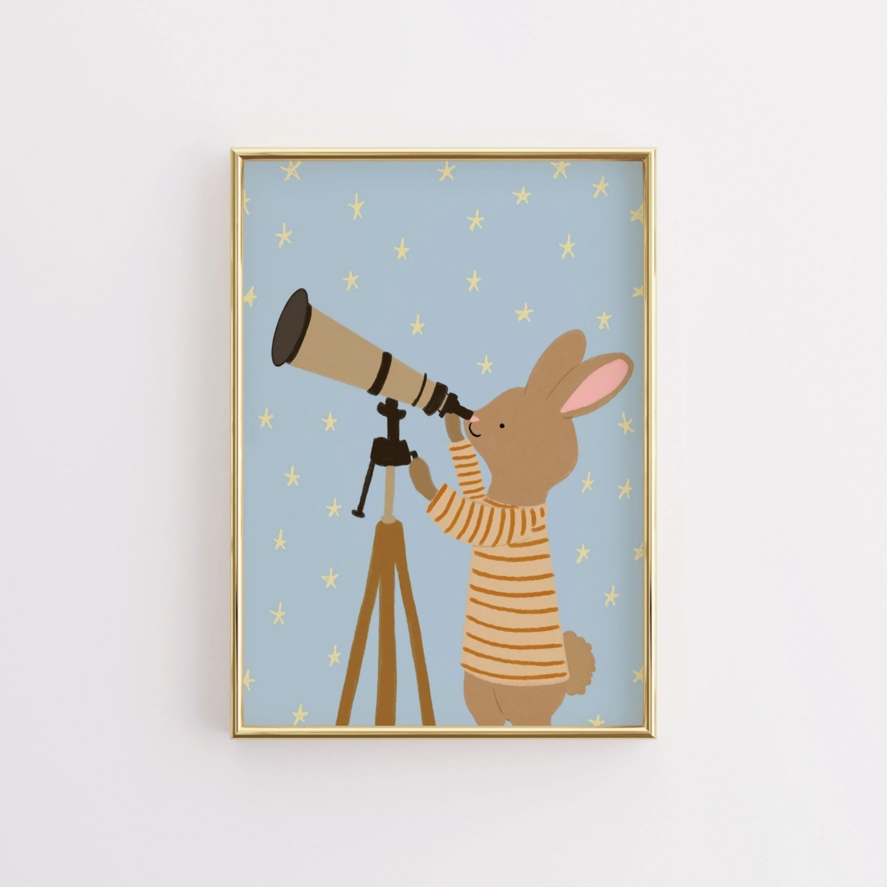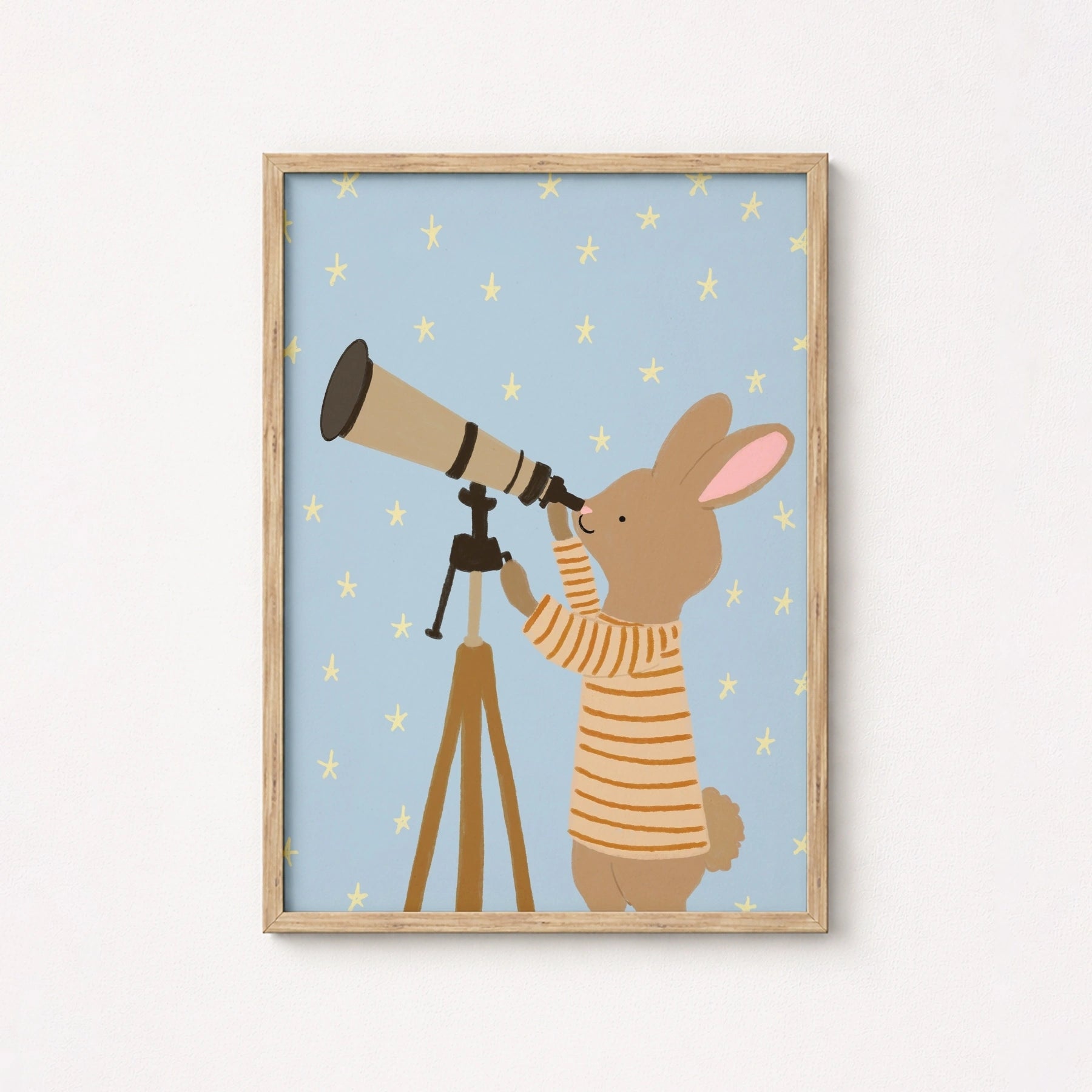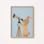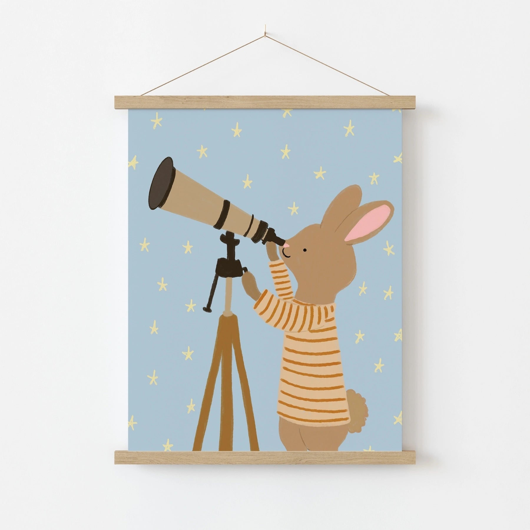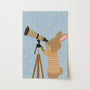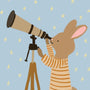 Stampa di coniglietto che osserva le stelle