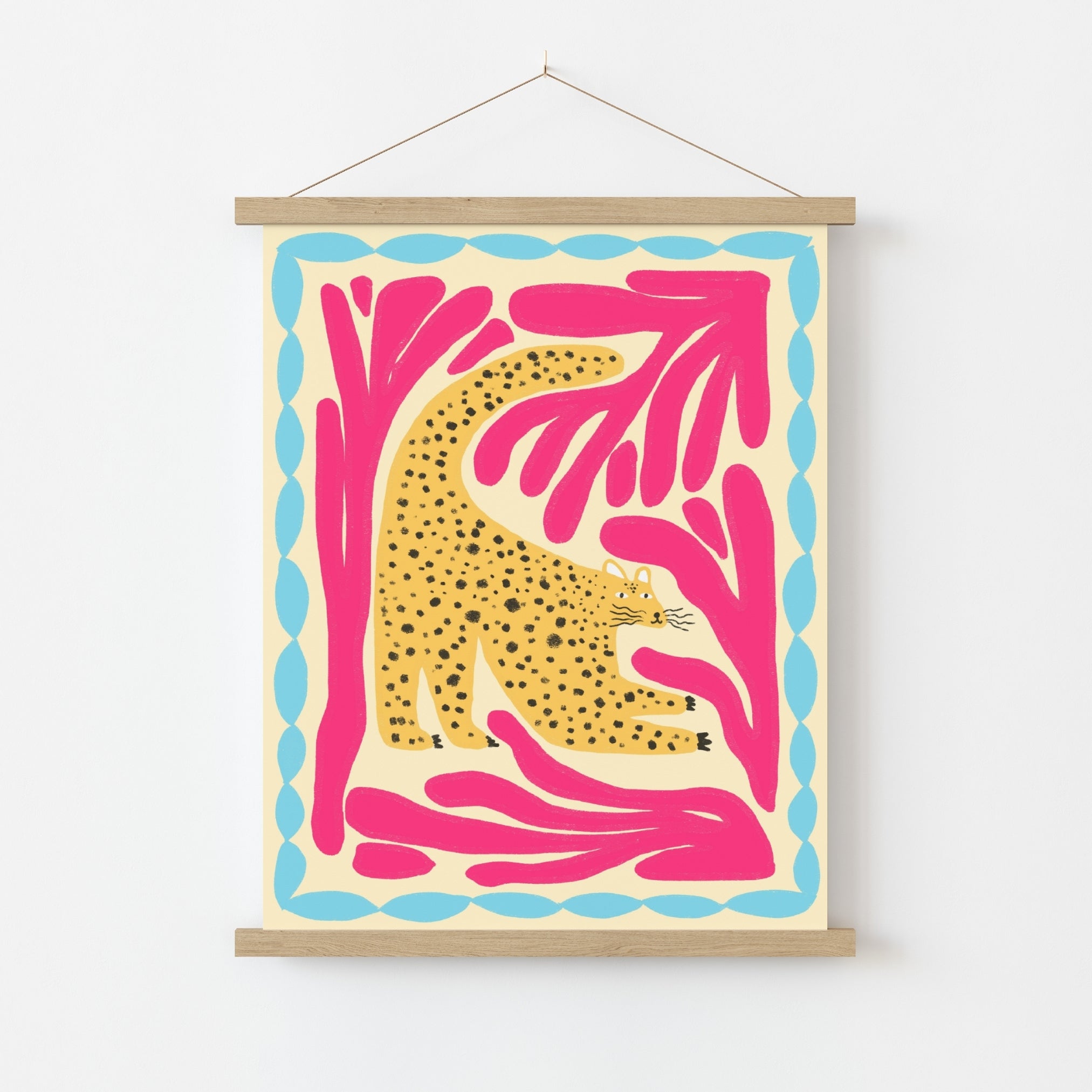 Stampato su carta semilucida di alta qualità da 200 g/m², per toni tenui ma vivaci e dettagli nitidi. Fornito con un gancio magnetico in legno minimalista, disponibile nelle finiture naturale, bianco o nero. Leggero, moderno e pronto da appendere all'istante, senza bisogno di cornice.