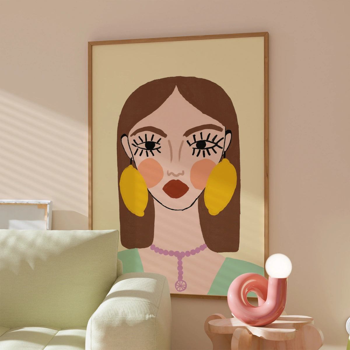 Lemon Earrings Print – Bold Female Portrait Wall Art