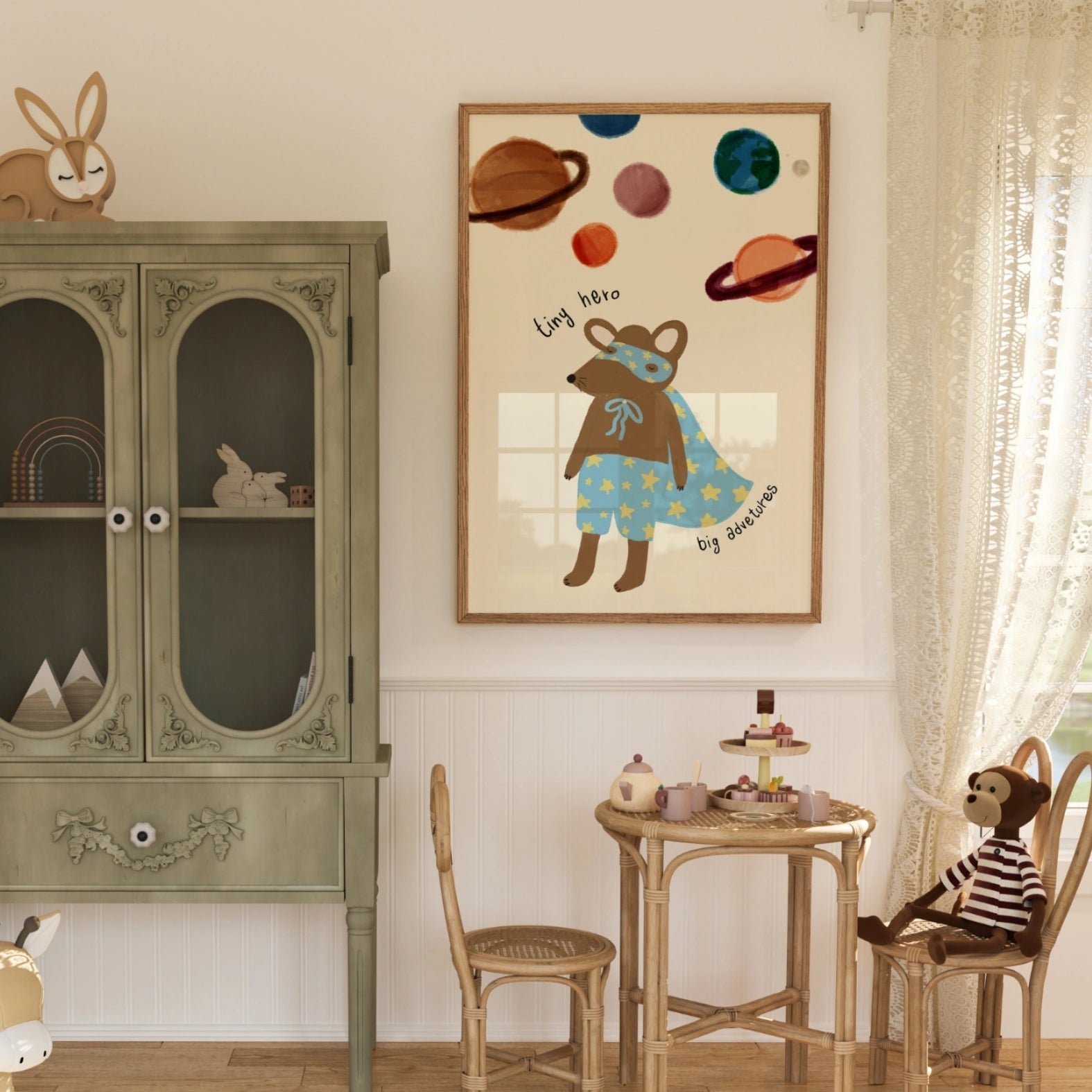 Turn your little one’s room into a peaceful and inspiring space with our hand-illustrated nursery wall art.