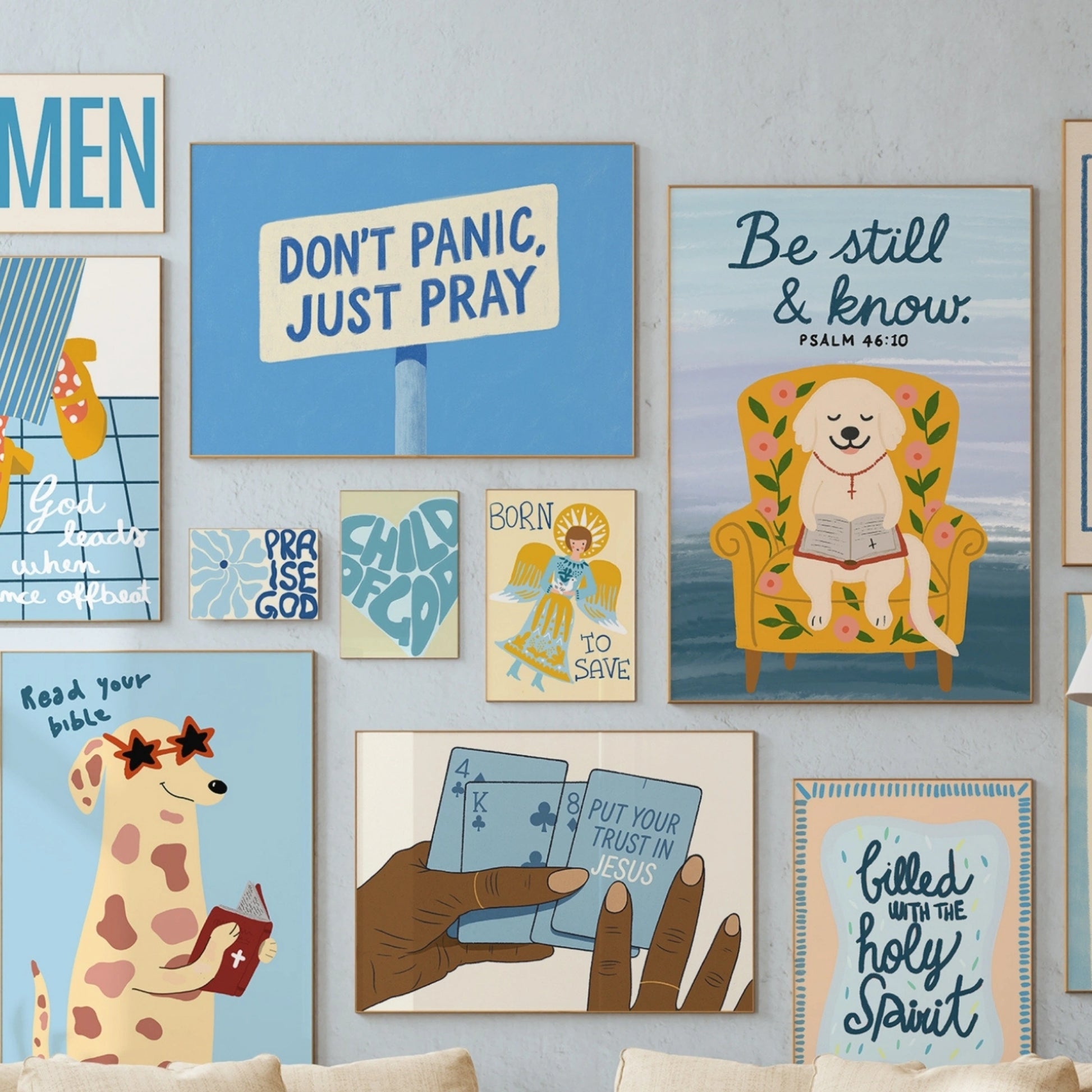 Bring calm and inspiration into your home with the Blue Christian Collection, a curated selection of 100 digital prints hand-drawn on iPad Pro. Each piece combines serene blue tones with uplifting faith-based messages, creating a peaceful and refreshing atmosphere. Perfect for modern Christian homes, nurseries, or prayer corners, this collection reflects the essence of faith, grace, and hope in every detail.