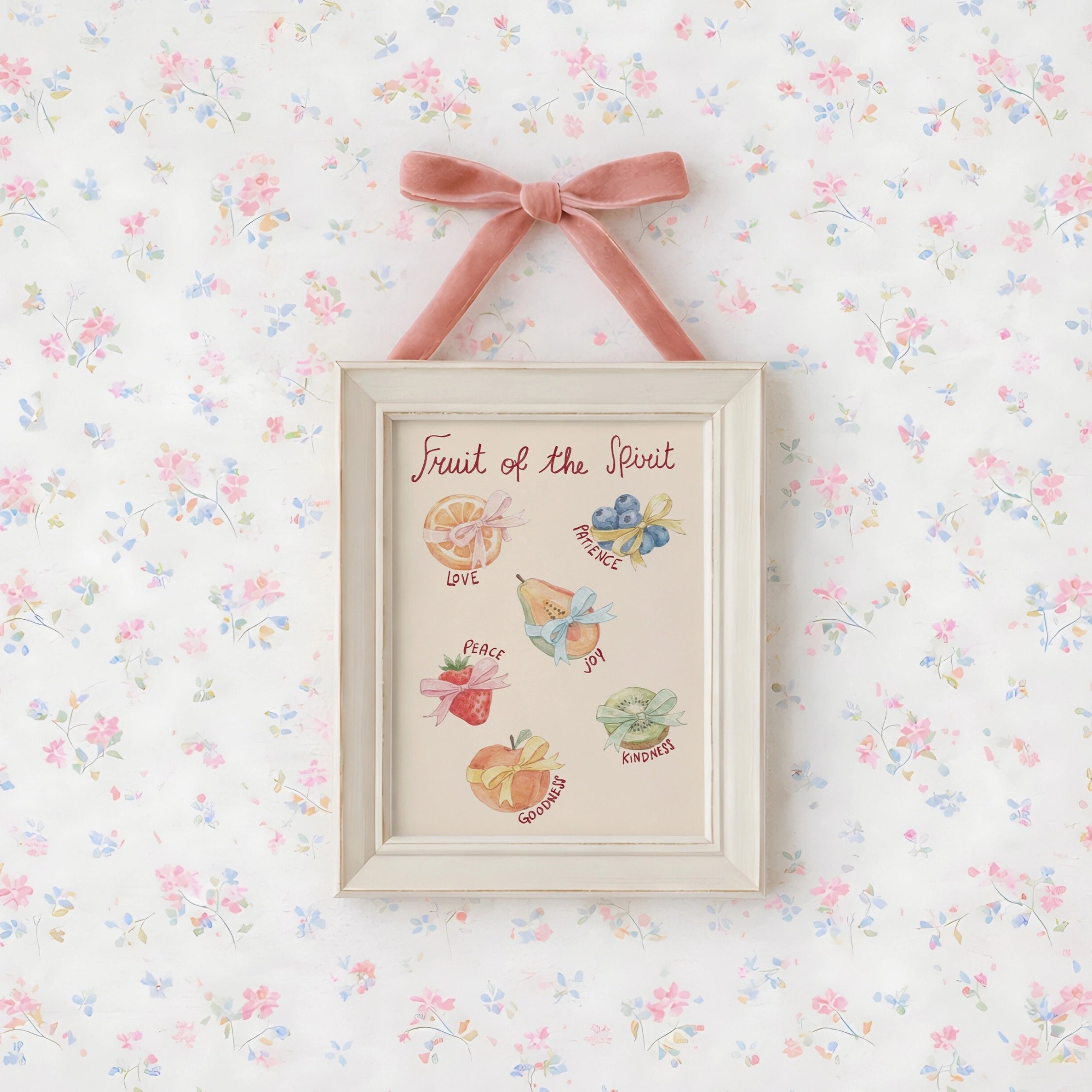 Turn your space into a soft, faith-filled sanctuary with our hand-illustrated Christian wall art in a delicate spring coquette style.