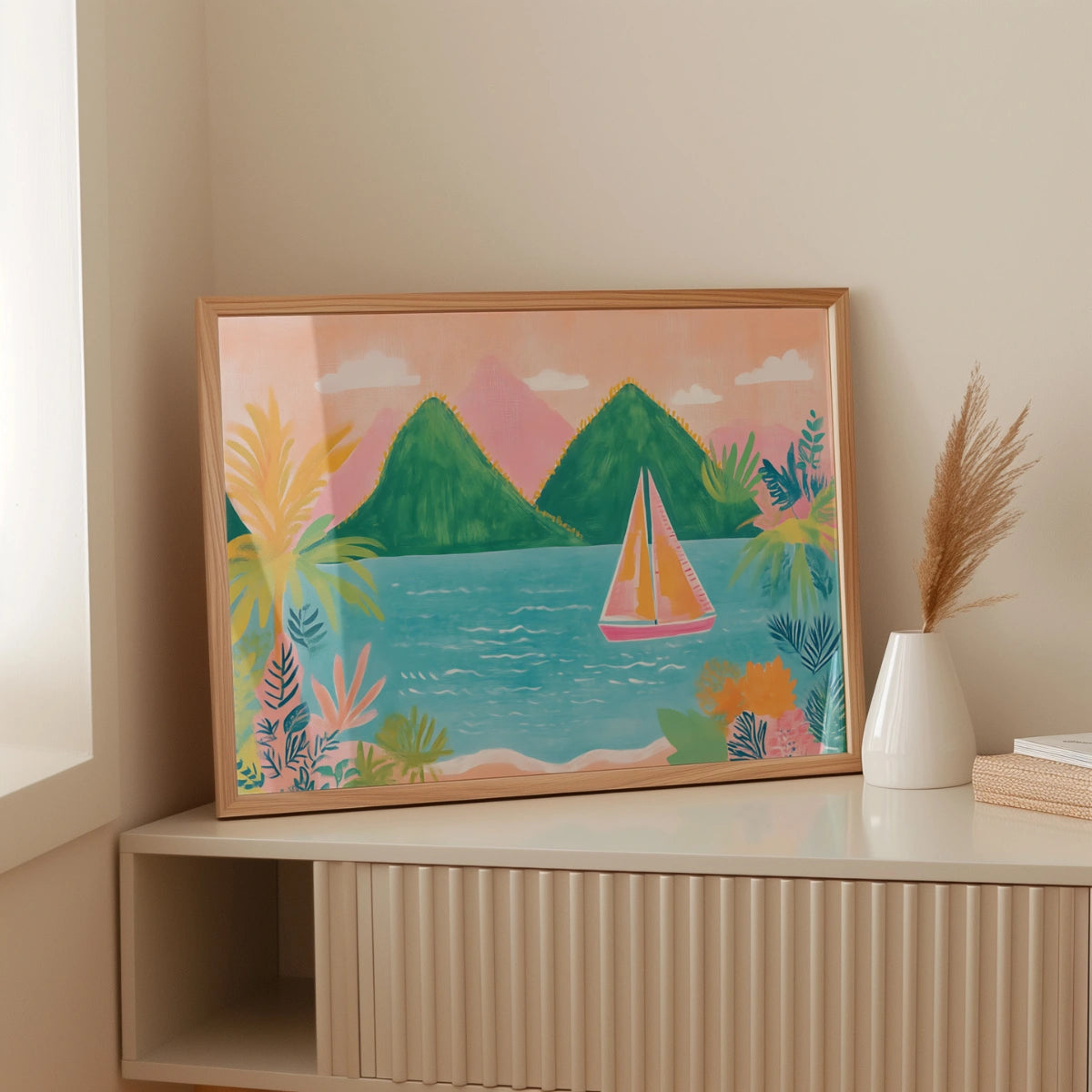 Colorful Tropical Sailboat Wall Art – Vibrant Coastal Beach Print
