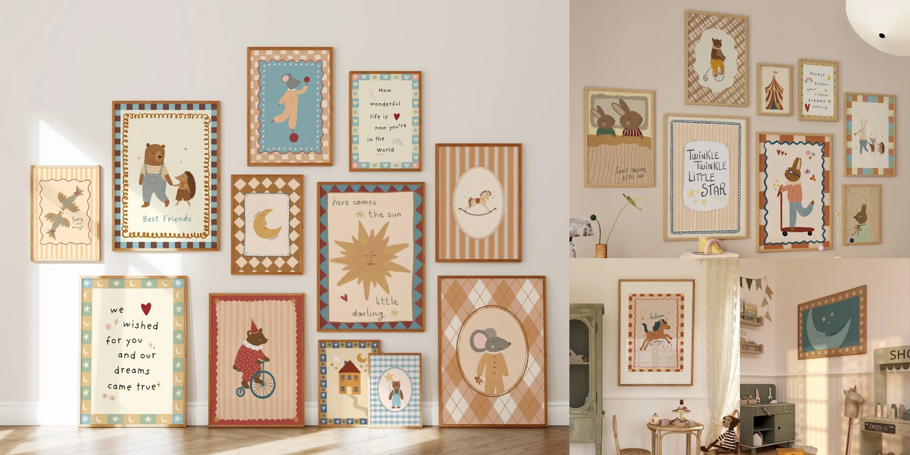 I didn’t expect them to look this beautiful in person. Each print feels truly hand-drawn, with incredibly refined details. My kids’ room now has such a warm and cozy atmosphere.