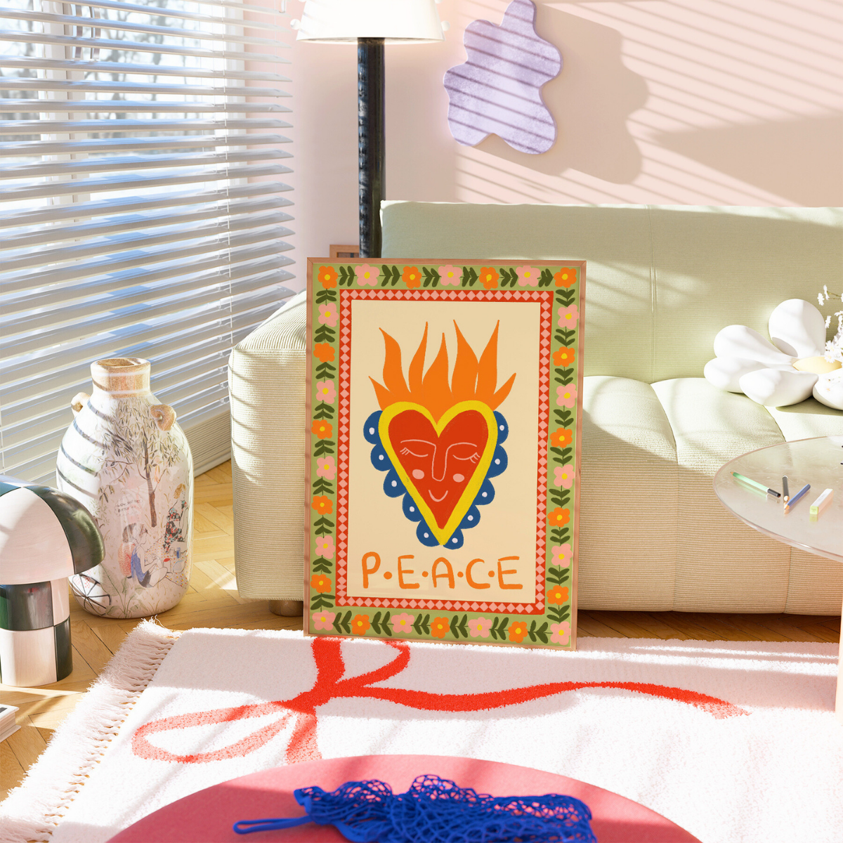 Friedensmotiv mit Herz Jesu – Christliche Volkskunst-Wanddekoration