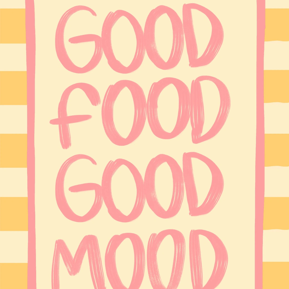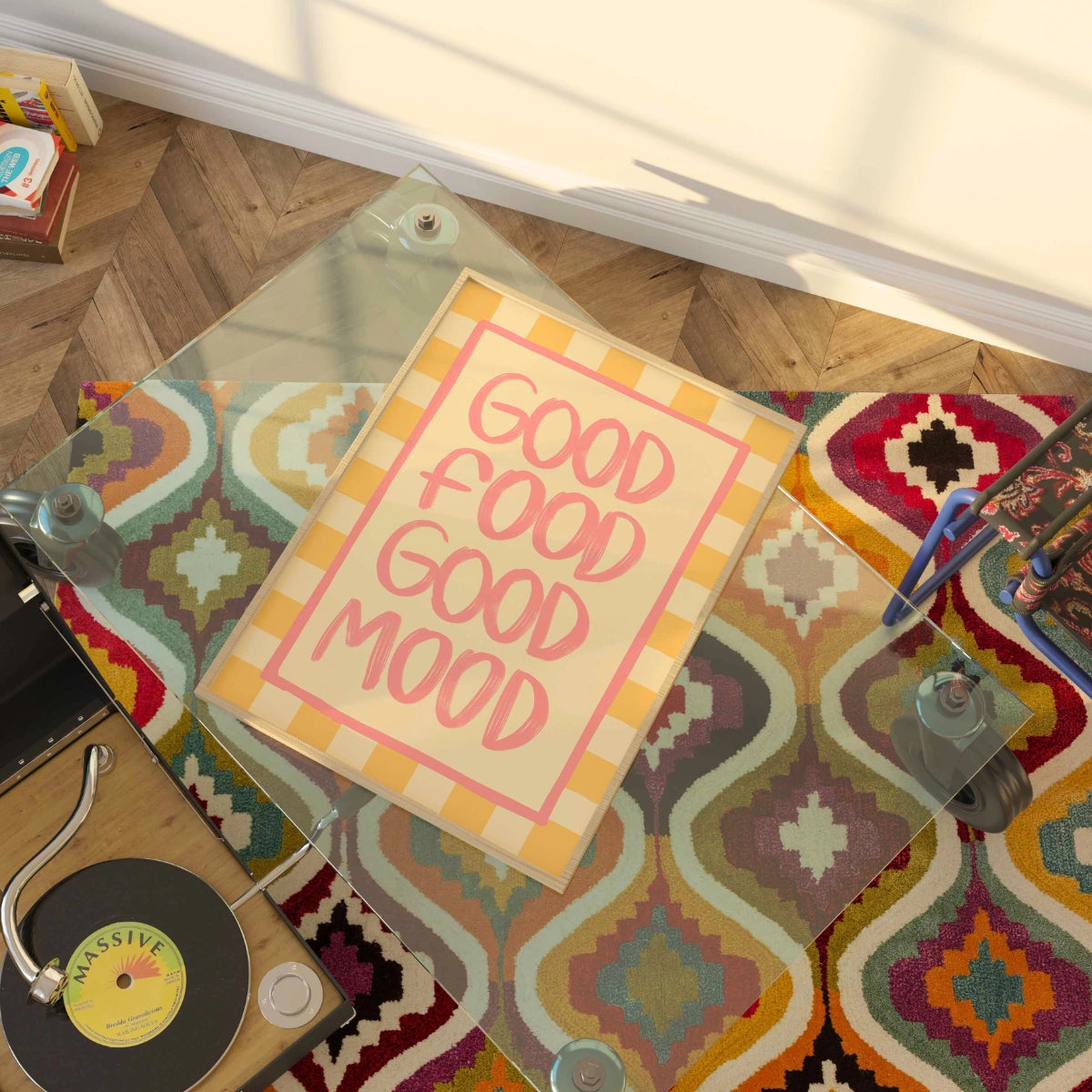 Wandbild „Gutes Essen, gute Laune“ – Ausdrucksstarker Küchendruck