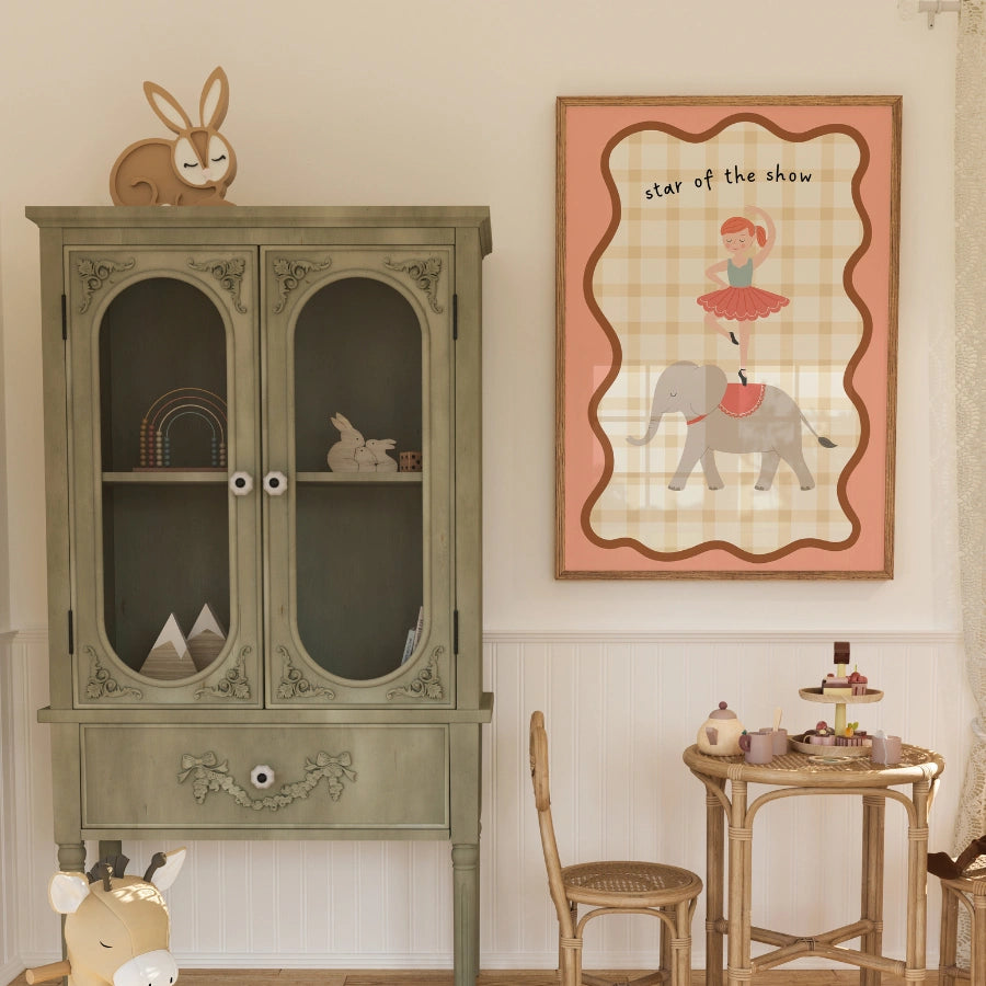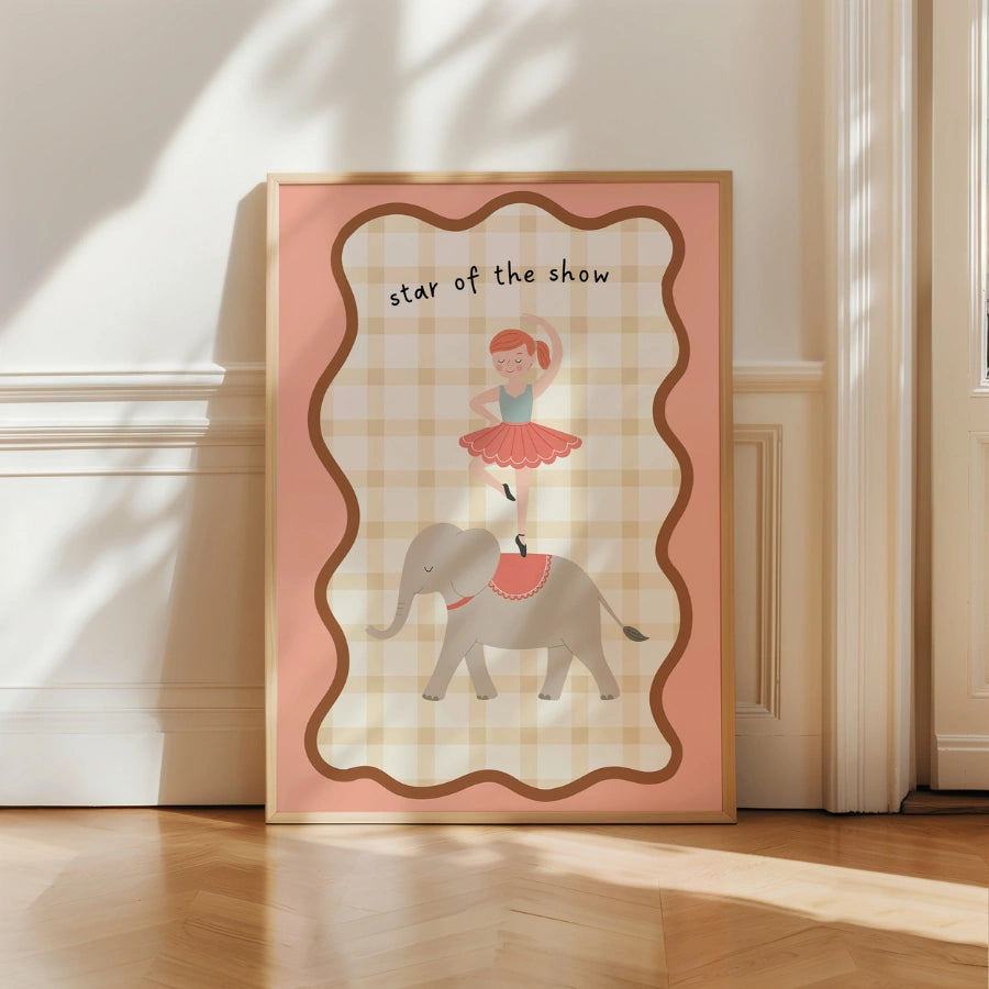 „Star der Show“ – Kinderzimmerbild: Zirkuselefant und Ballerina