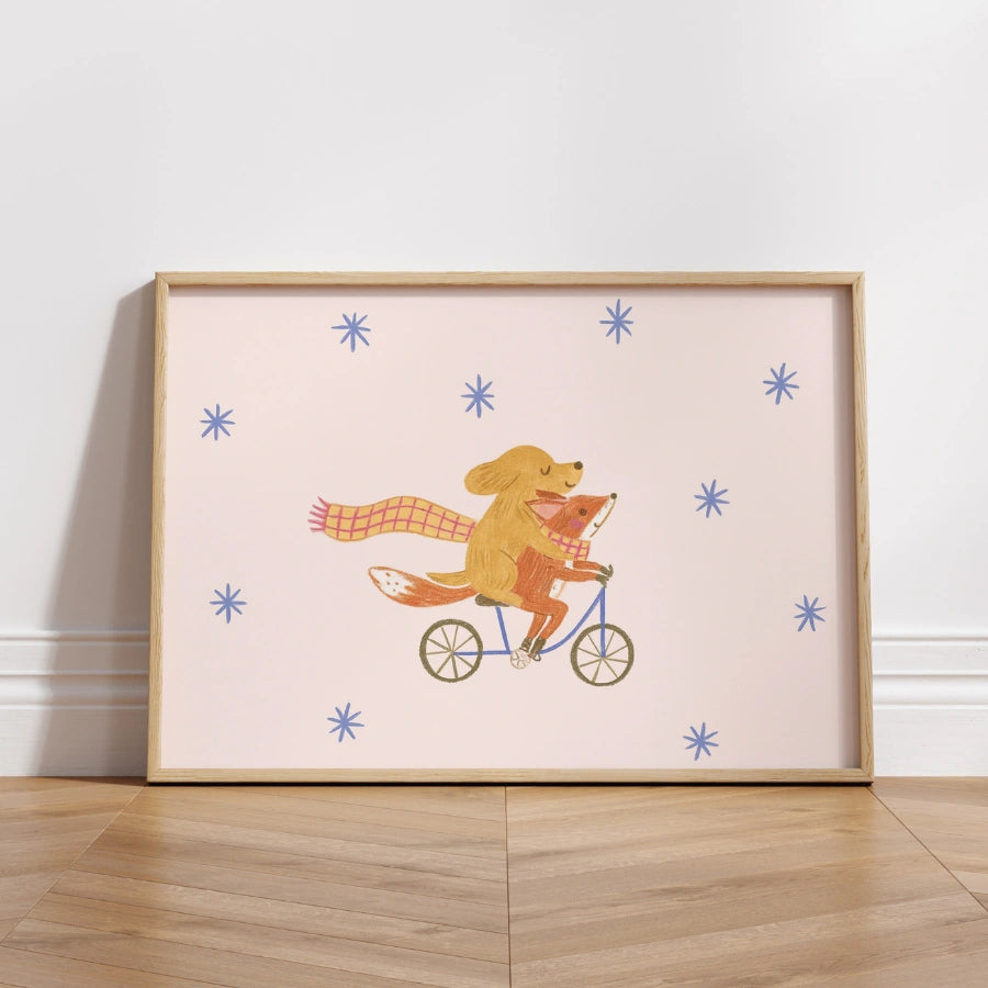 Kinderzimmerbild mit Hund und Fuchs – Niedliche Tierfreunde als Wandbild