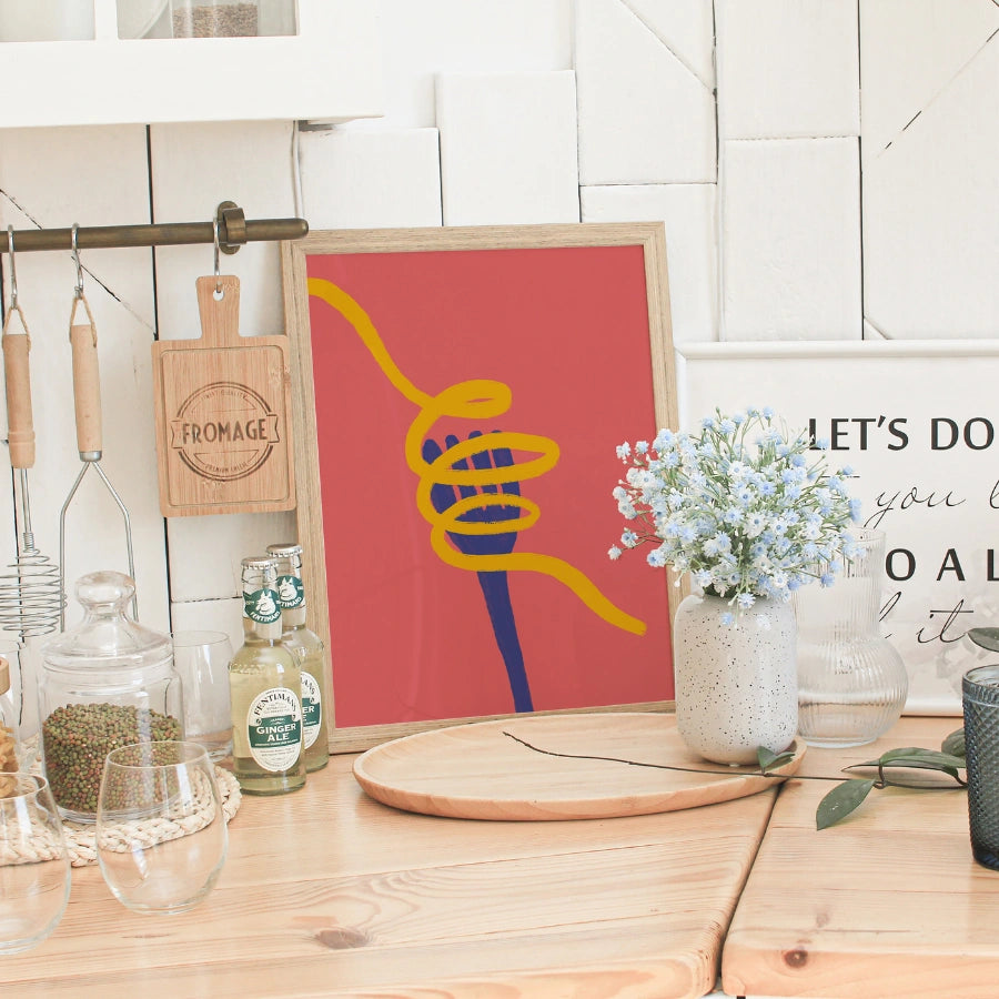 Moderne Pasta-Wandkunst – Ausdruck einer ausdrucksstarken Spaghetti-Illustration