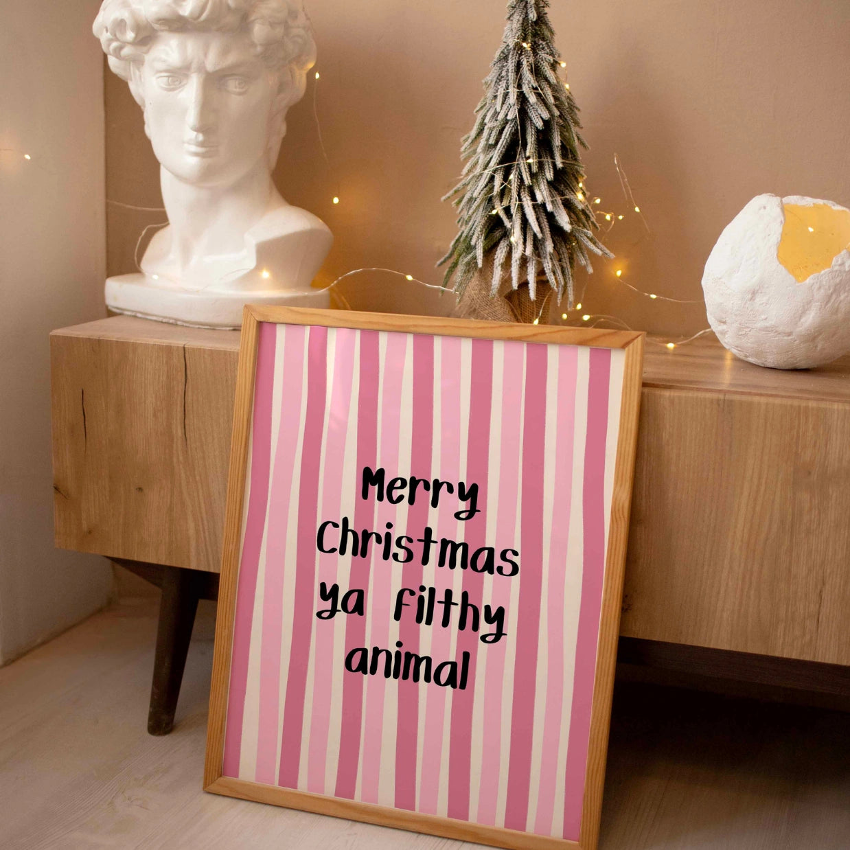 Gerahmtes Poster: Massivholzrahmen in Natur, Weiß oder Schwarz, geschützt durch bruchsicheres Plexiglas und fertig zum vertikalen oder horizontalen Aufhängen.