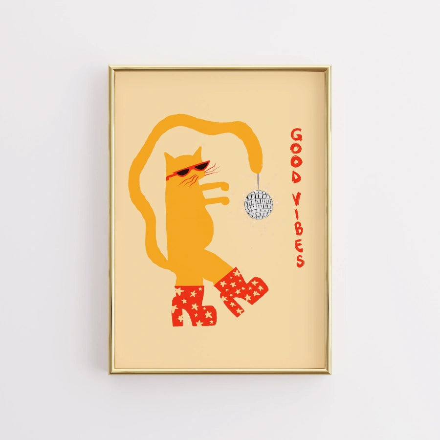 Disco-Katzen-Wandbild – Ausgefallener maximalistischer Tierdruck