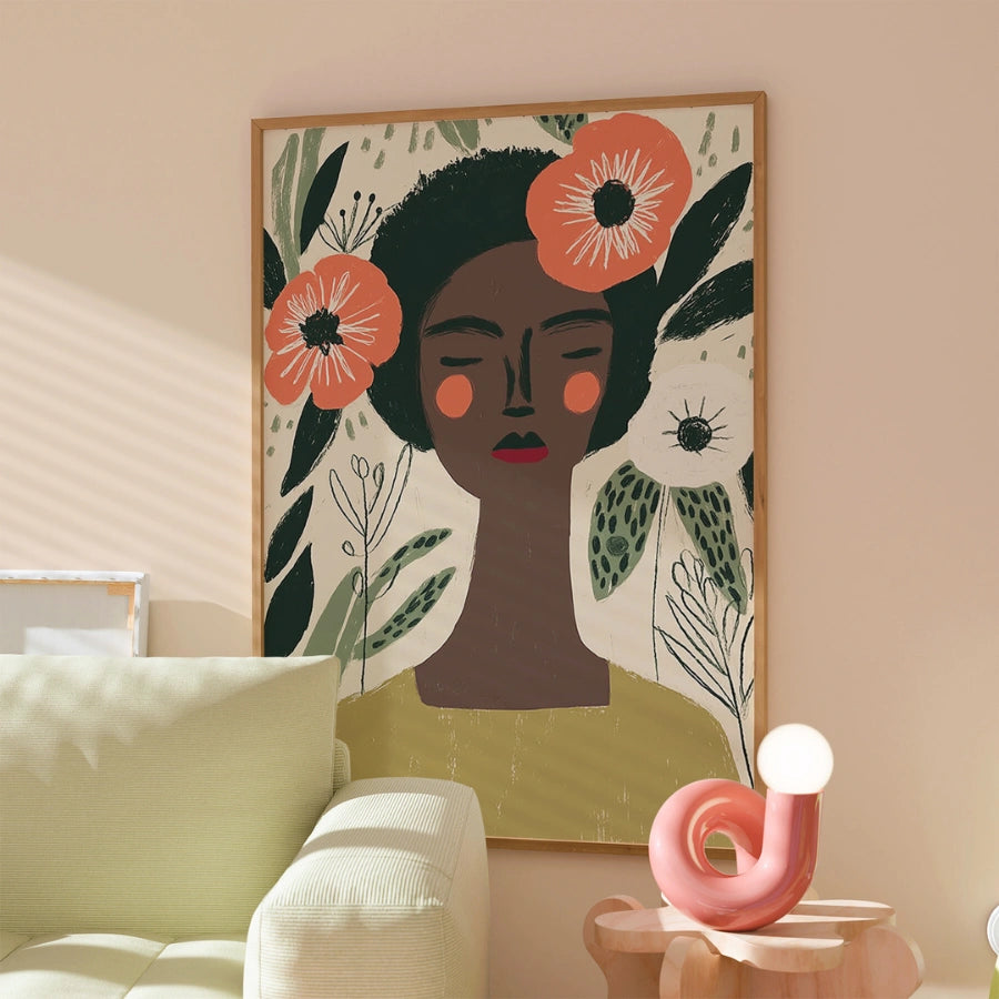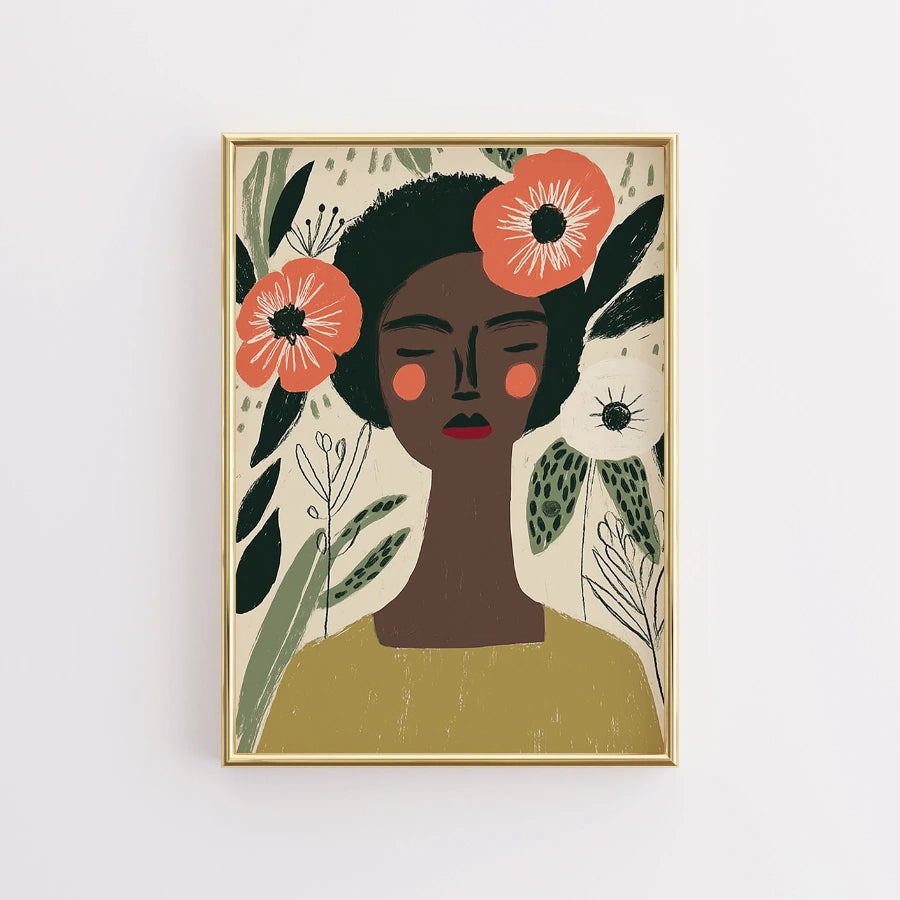 Arte murale floreale di donna – Ritratto femminile pacifico