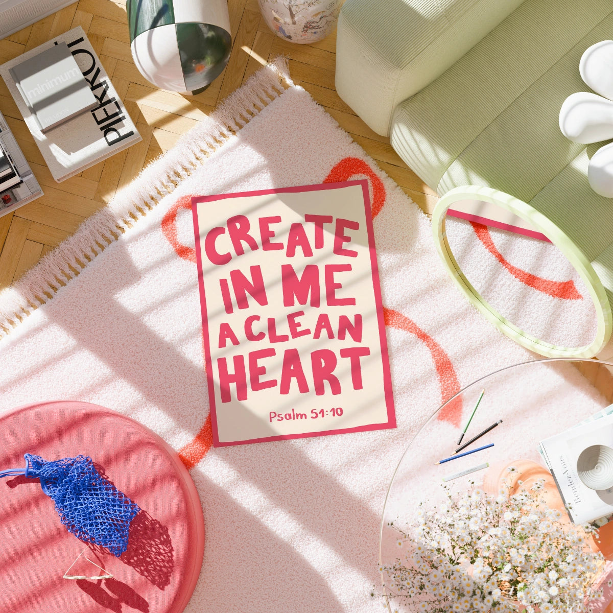 Stampa del Salmo "Cuore Puro" - Versetto della Bibbia Cristiana da Parete
