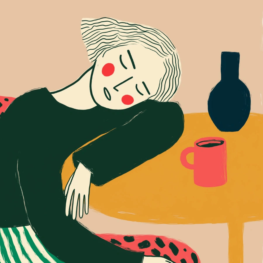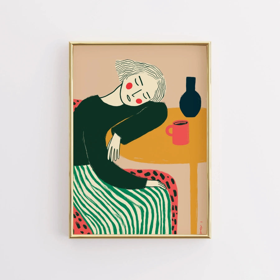 Donna a riposo Boho Wall Art – Ritratto pacifico con linee audaci