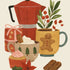 Decorazione murale natalizia per bar e caffè – Stampa disegnata a mano per la cucina delle feste