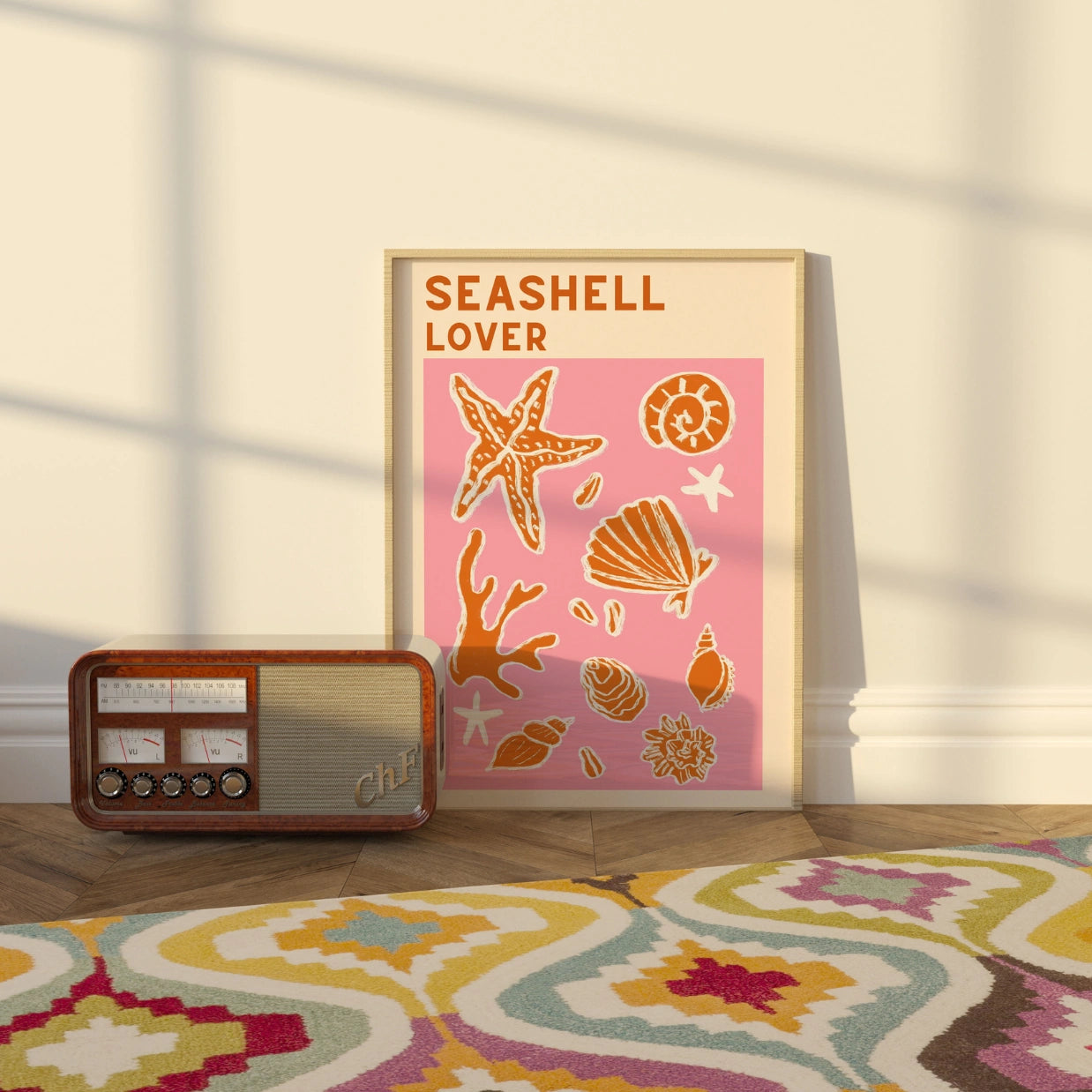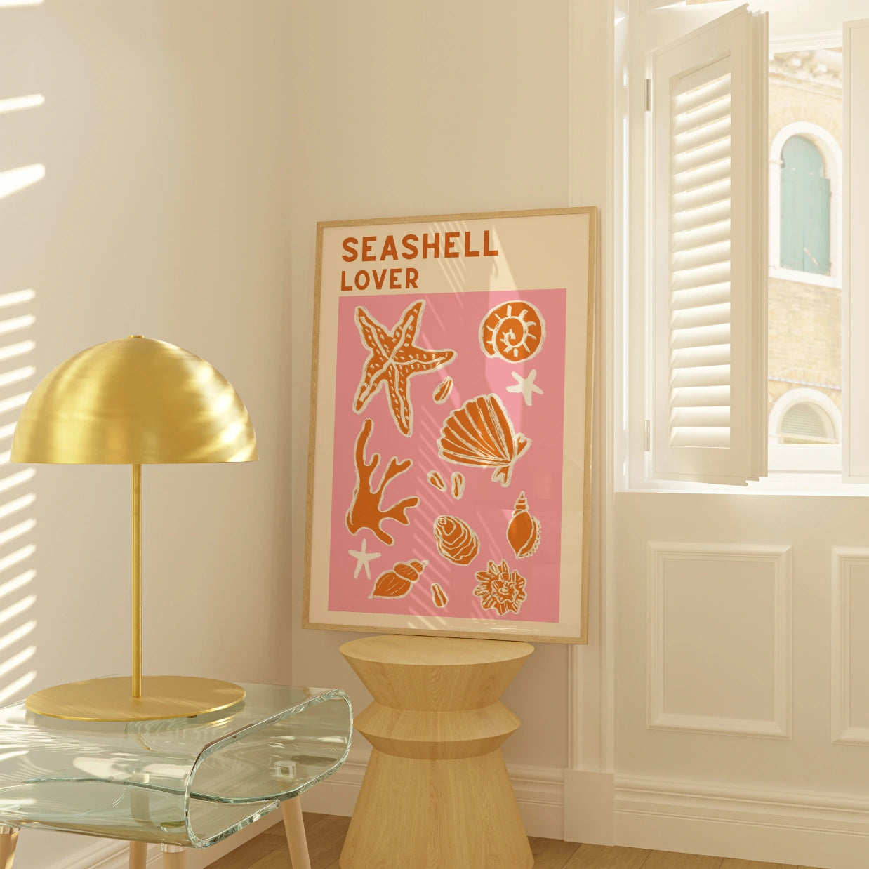 Stampa "Amante delle conchiglie" - Arte murale costiera in corallo audace