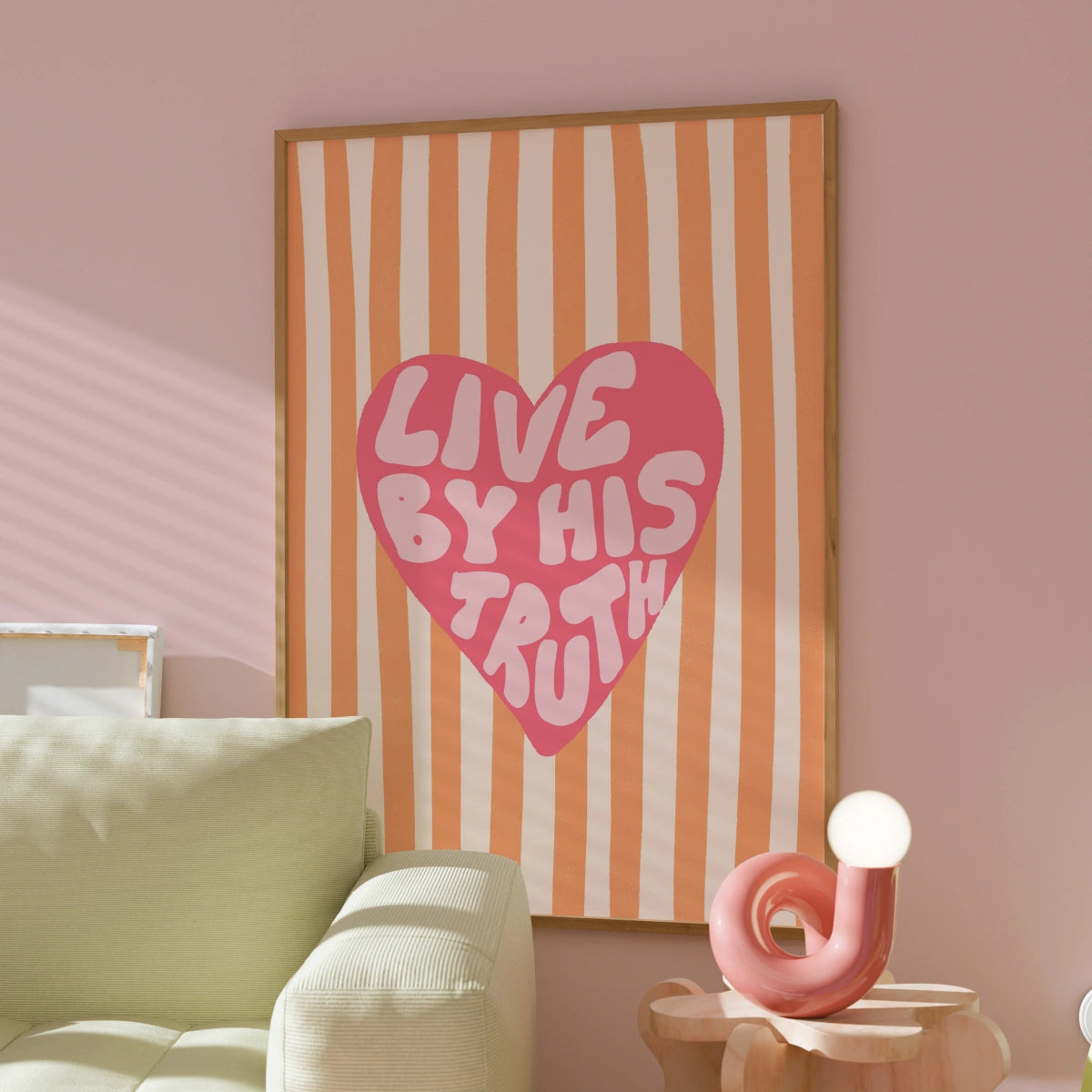 Vivi secondo la Sua Verità - Stampa artistica da parete con il cuore cristiano