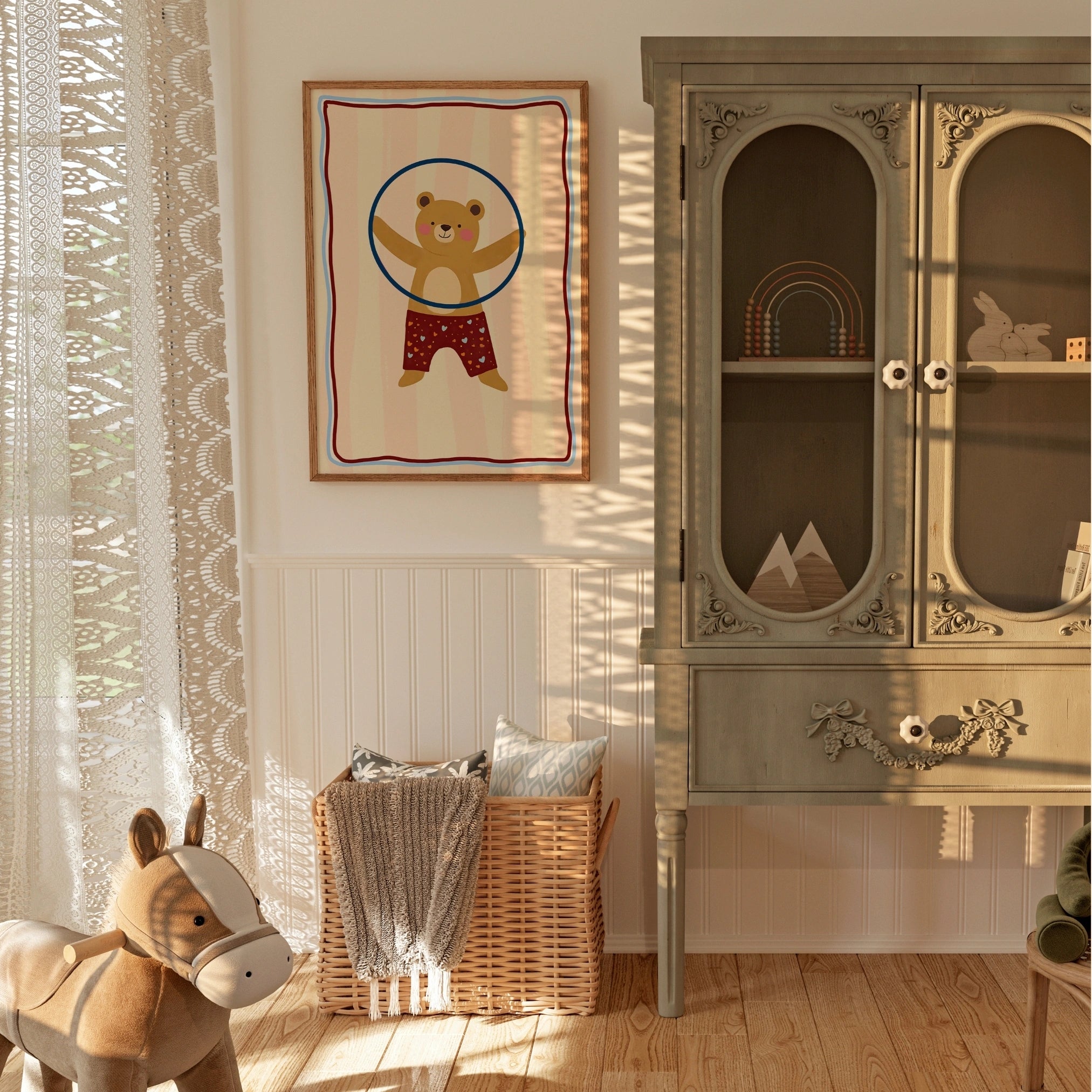 Decorazione murale con orsetto Hula Hoop – Stampa giocosa per la cameretta dei bambini