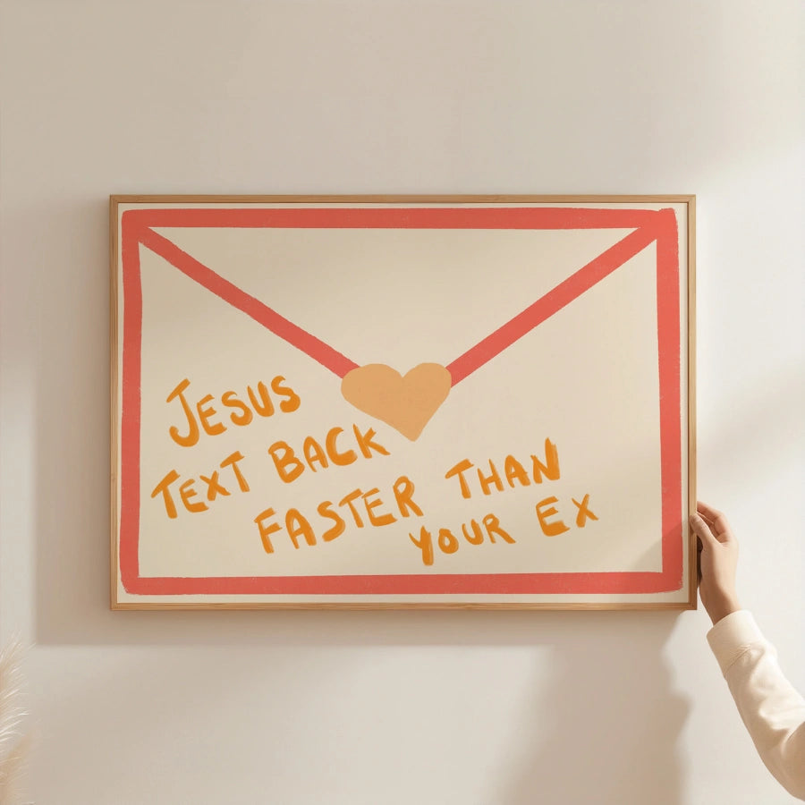 Gesù risponde ai messaggi più velocemente del tuo ex - Stampa murale divertente cristiana