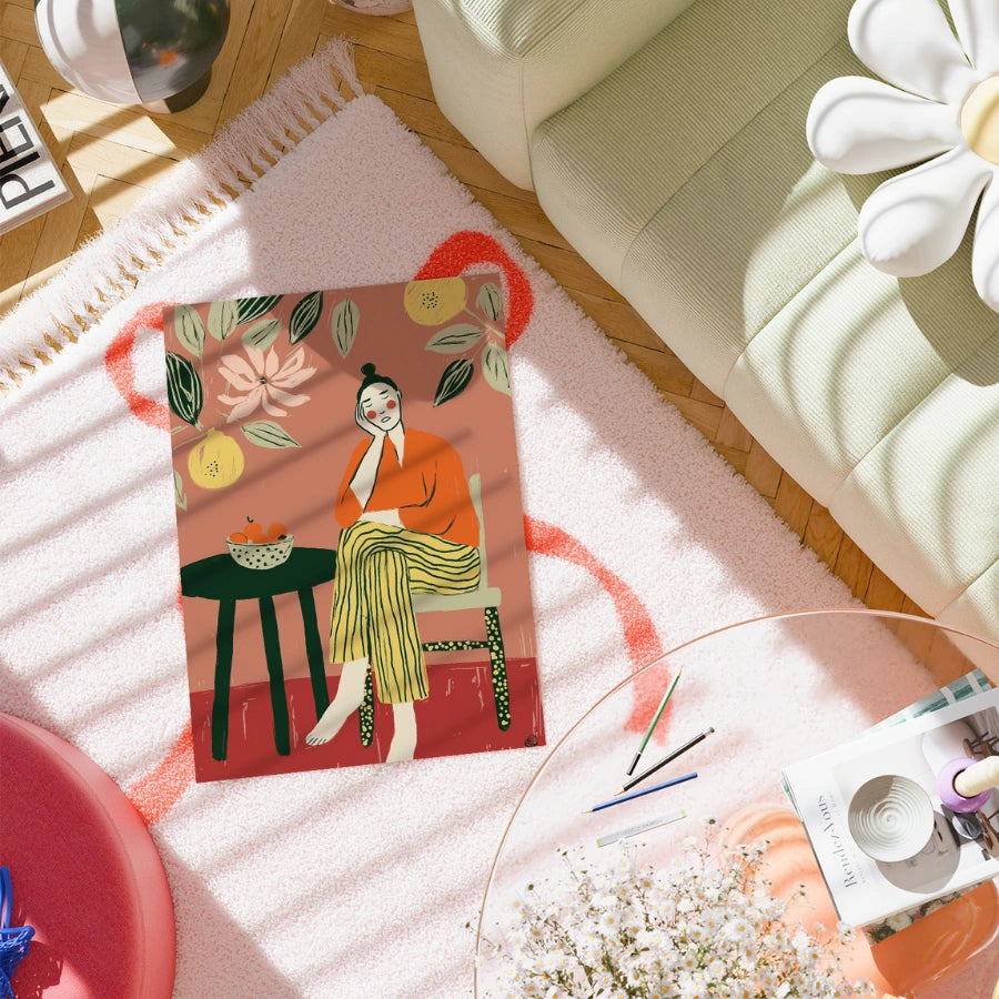 Lemon Lounge Boho Wall Art – Scena femminile contemplativa