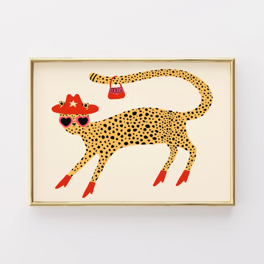 Fantastica stampa murale con ghepardo – Divertente stampa di animali da cowboy