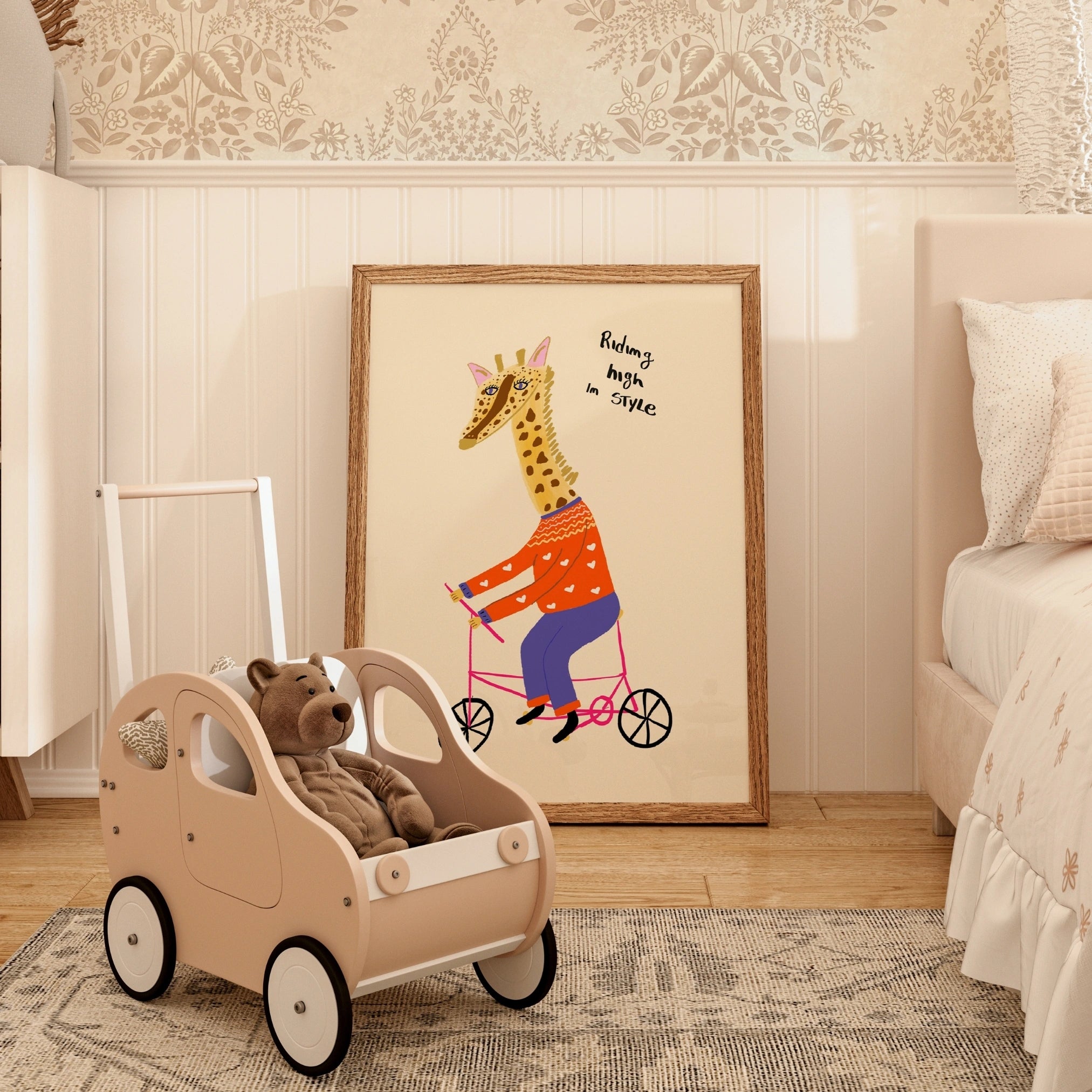 Riding High Giraffe Print – Fun Animal Art for Kids Room
