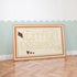 Delivered ready to hang in a solid wood frame available in natural, white, or black finishes. Protected by shatterproof plexiglass and includes a hanging kit for both vertical and horizontal display.